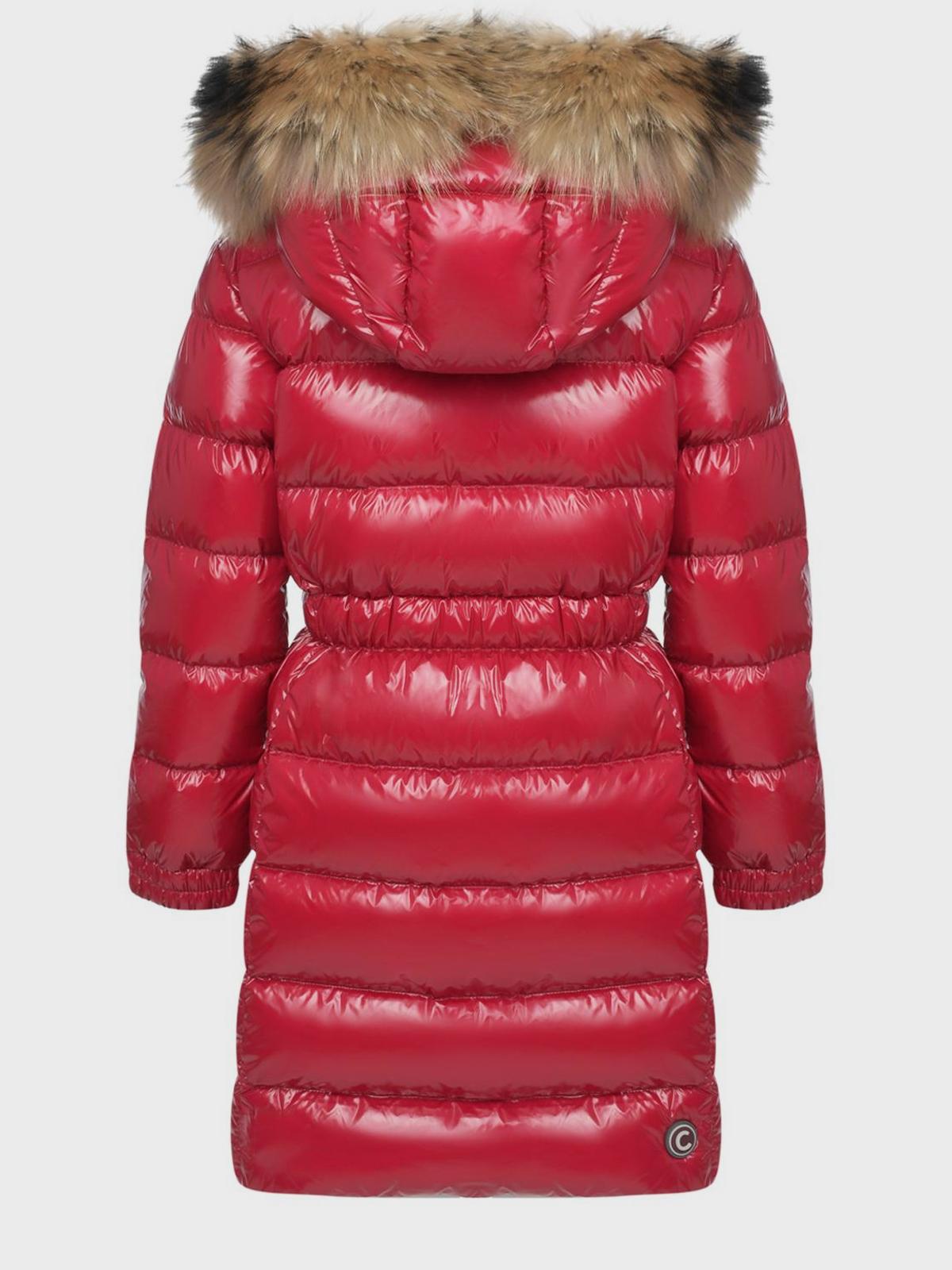 Пальто-пуховик малинового цвета