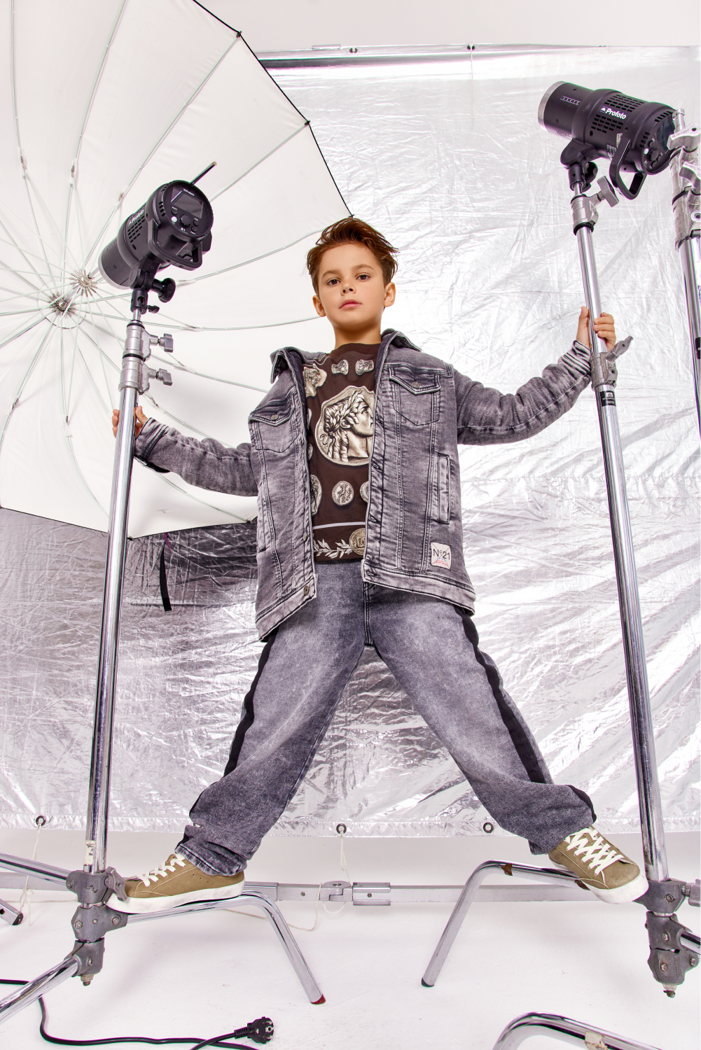 Главная / Мальчики / Одежда / Джинсы / N21 / Серые джинсы с черными лампасами