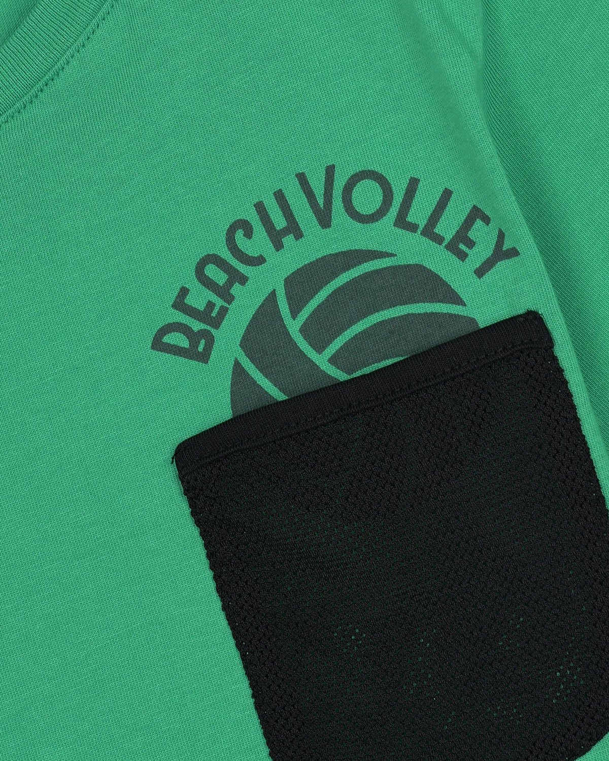 Зеленая футболка с черным накладным карманом
