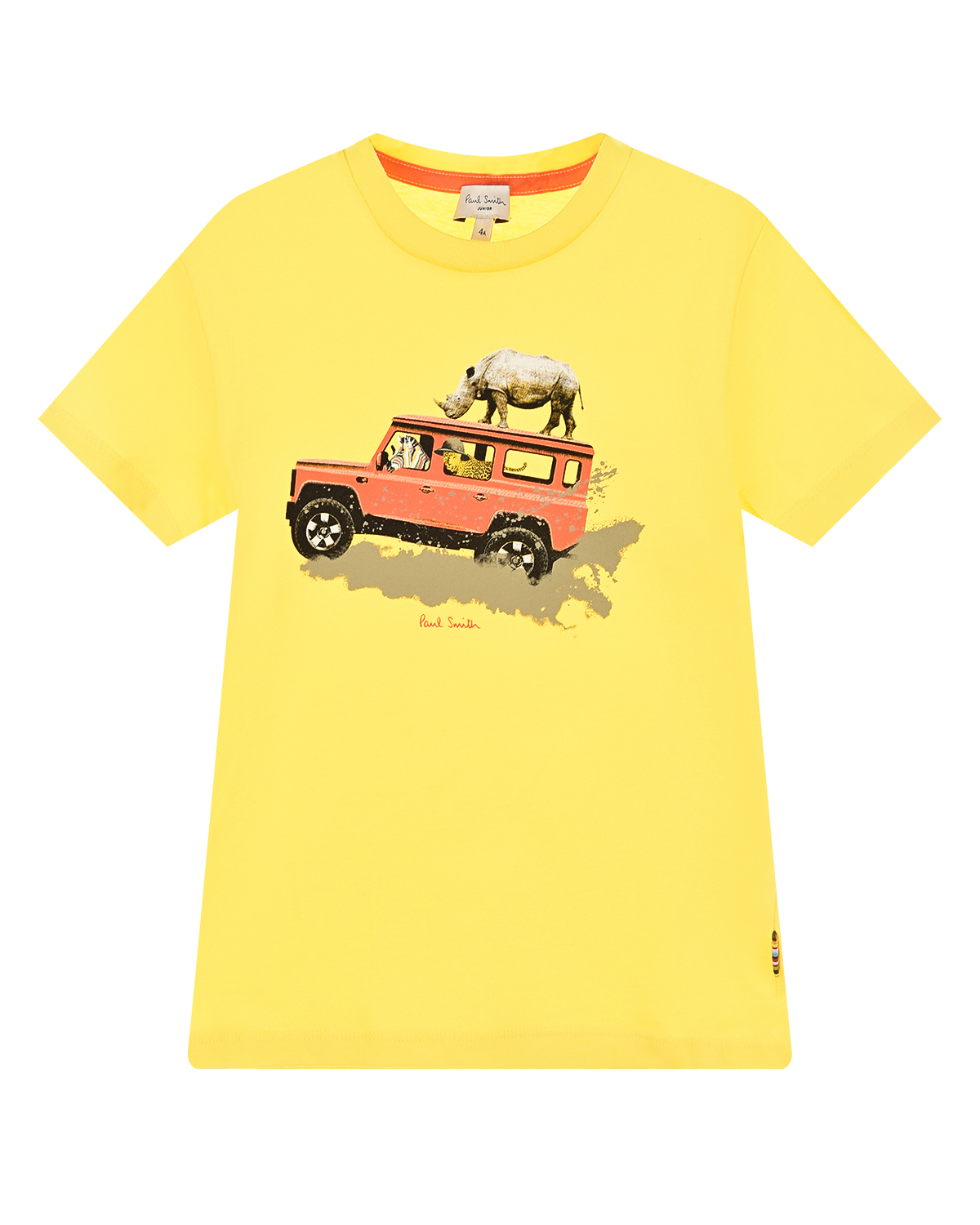 Желтая футболка с принтом "носорог"