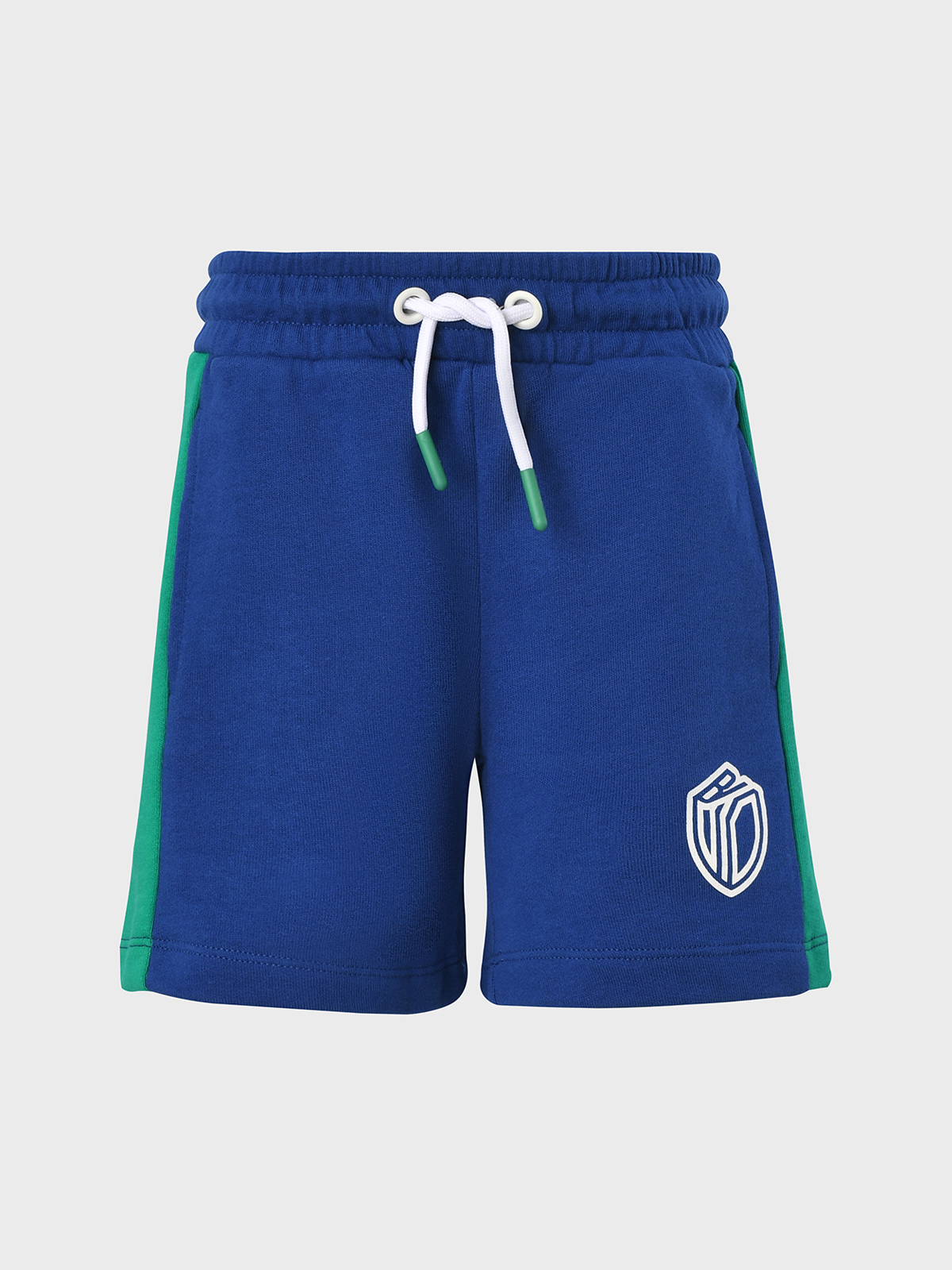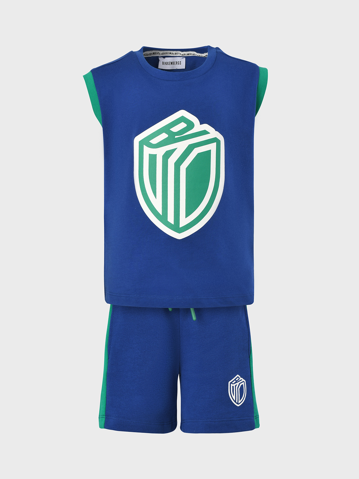 Комплект: футболка и бермуды, синий с зеленой отделкой