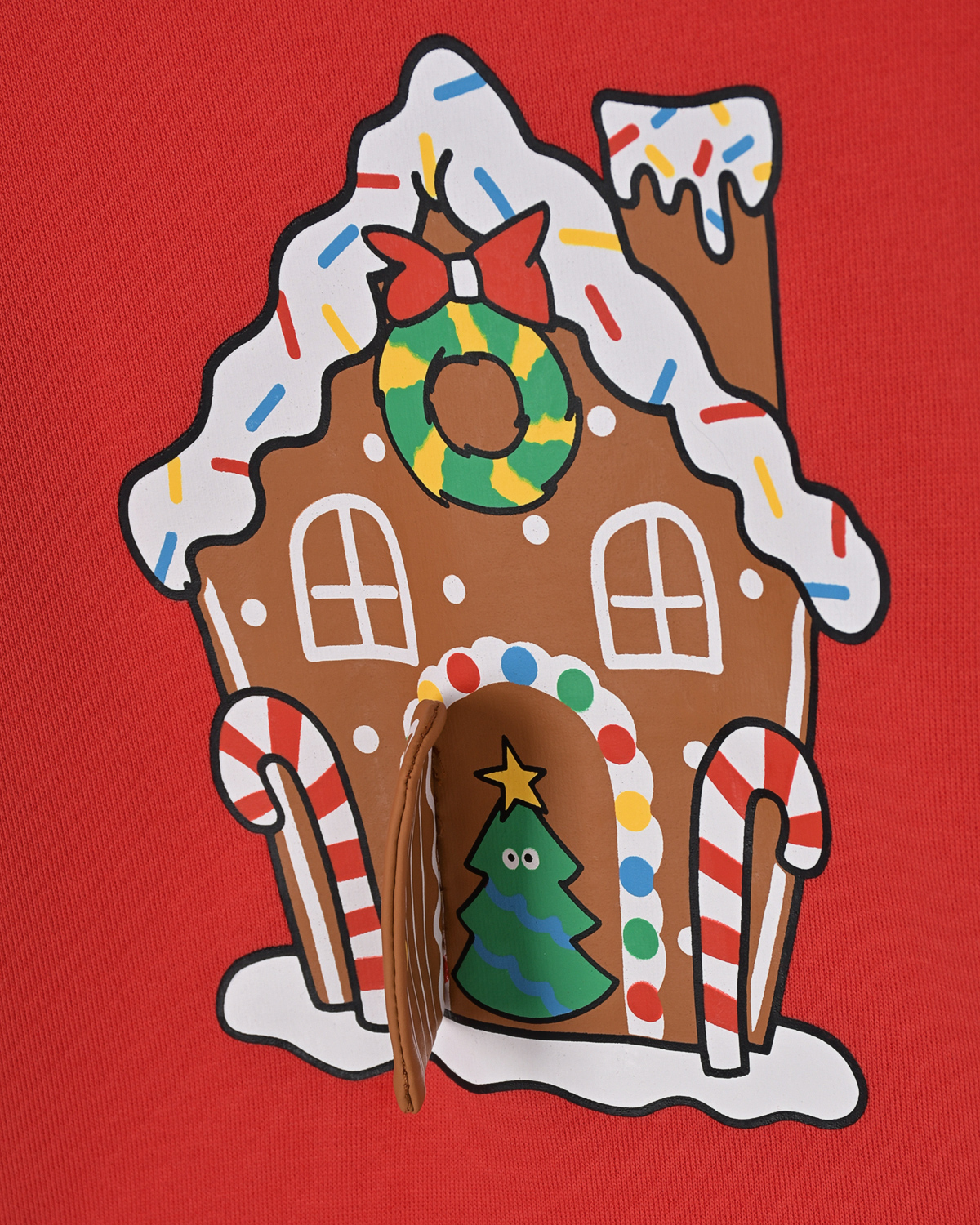 Красный свитшот с принтом "пряничный домик"