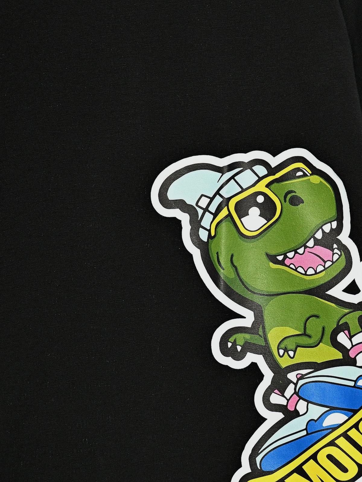 Толстовка с принтом динозавр на сноуборде, черная
