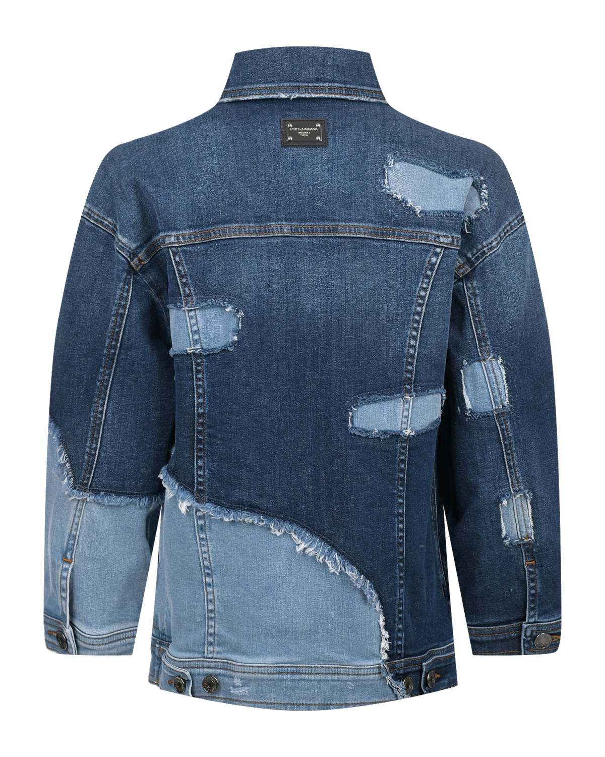 Синяя джинсовая куртка в стиле пэчворк