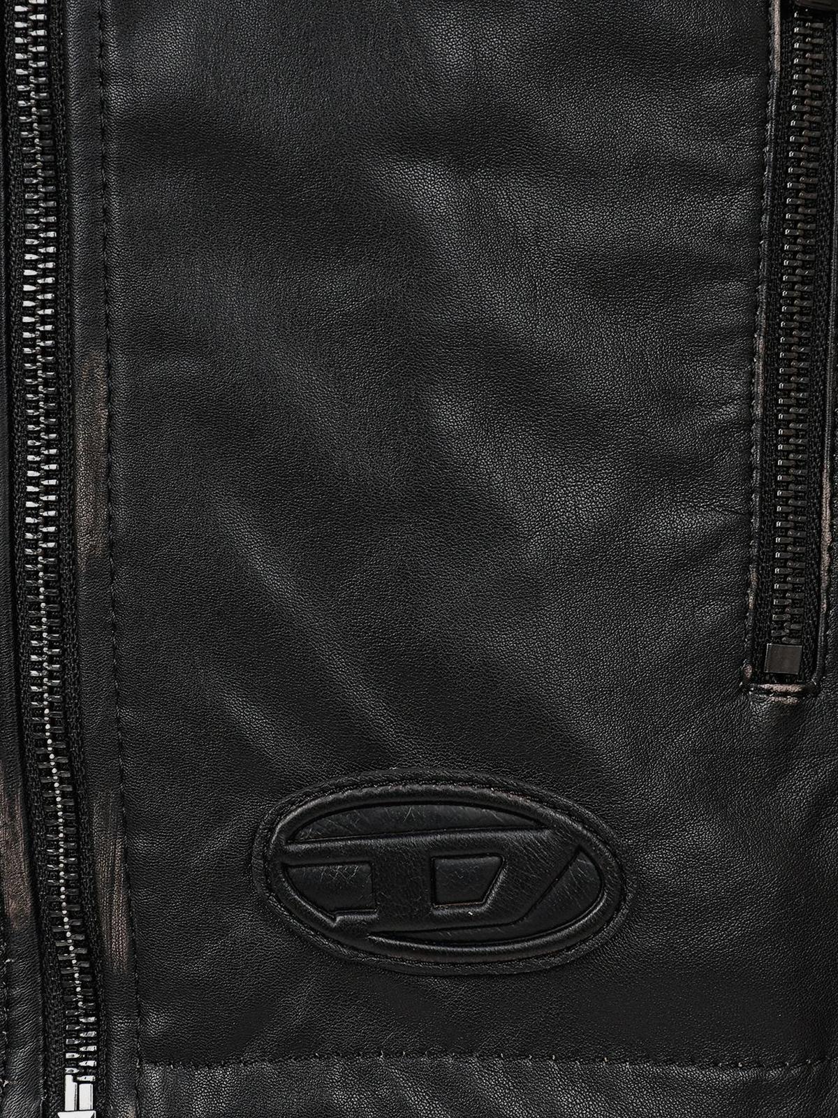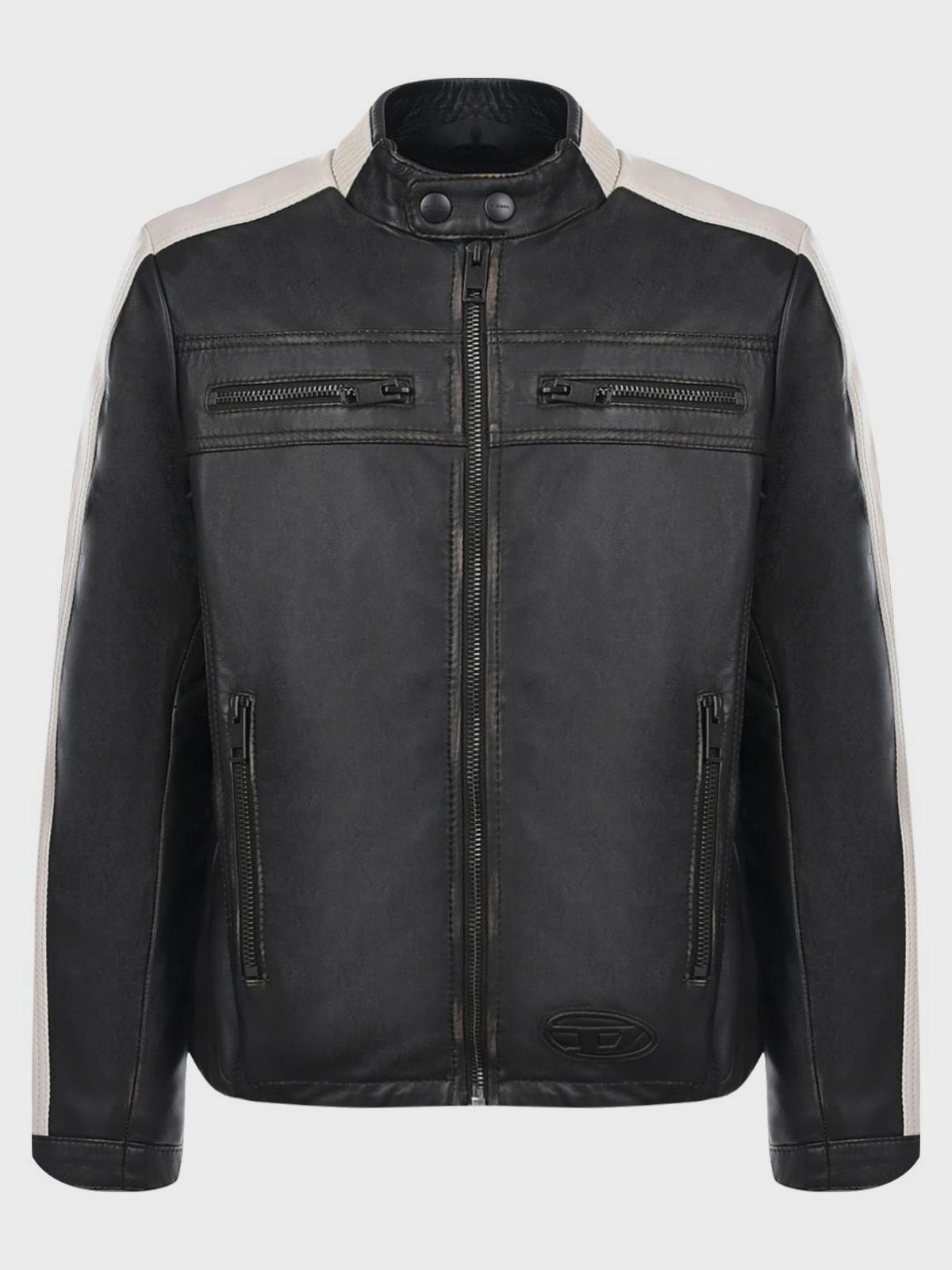 Кожаная куртка с воротником стойкой, черная