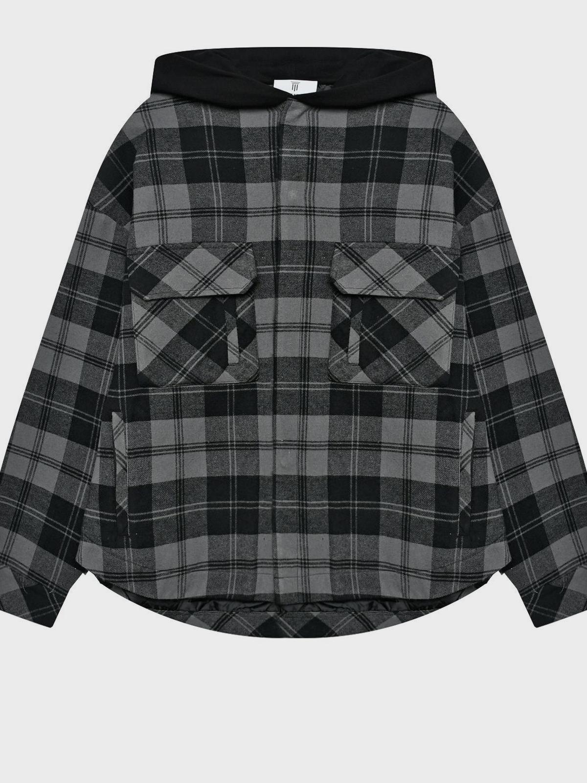 Куртка в клетку на кнопках, серая