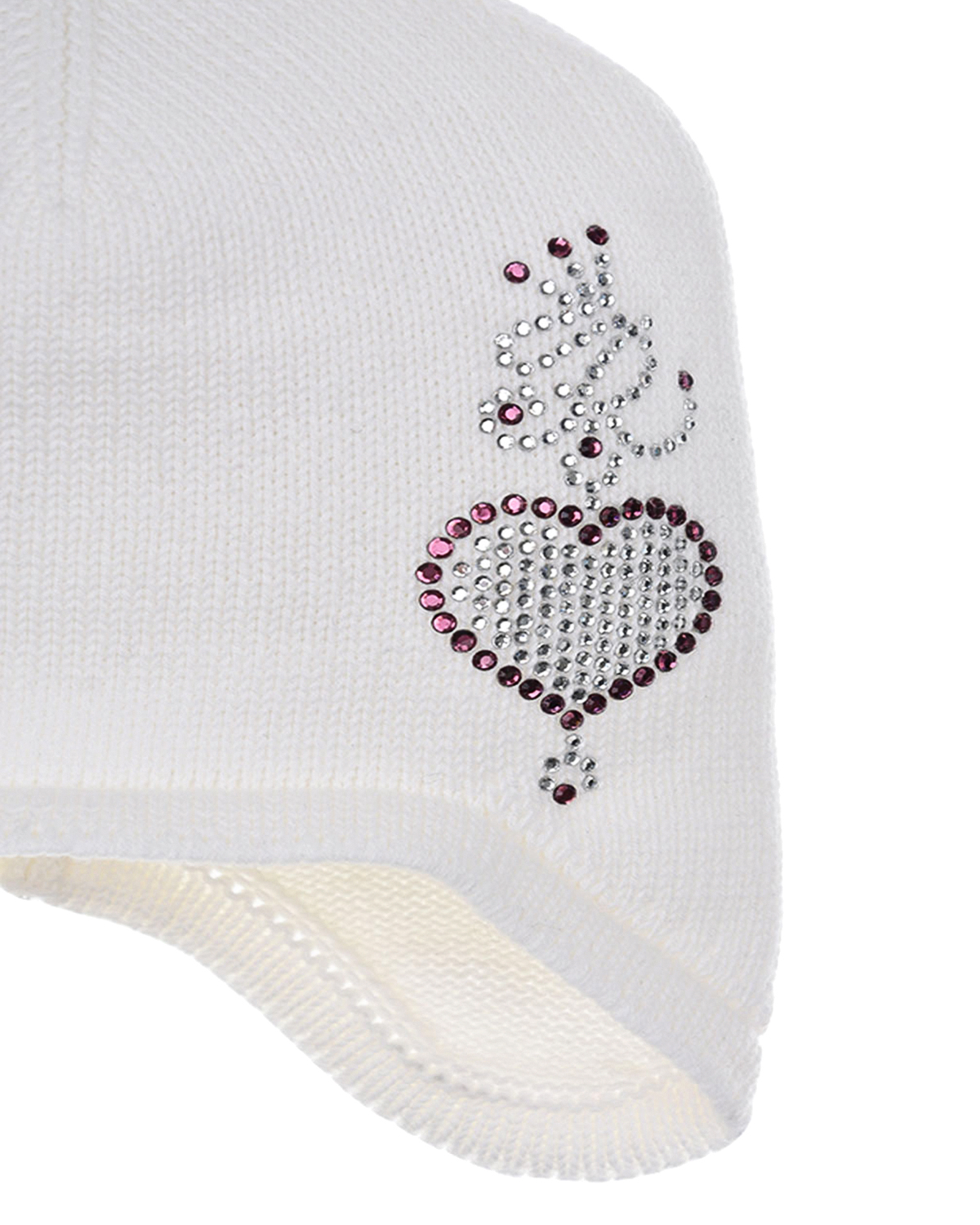 Белая шапка с декором из стразов в форме сердечка