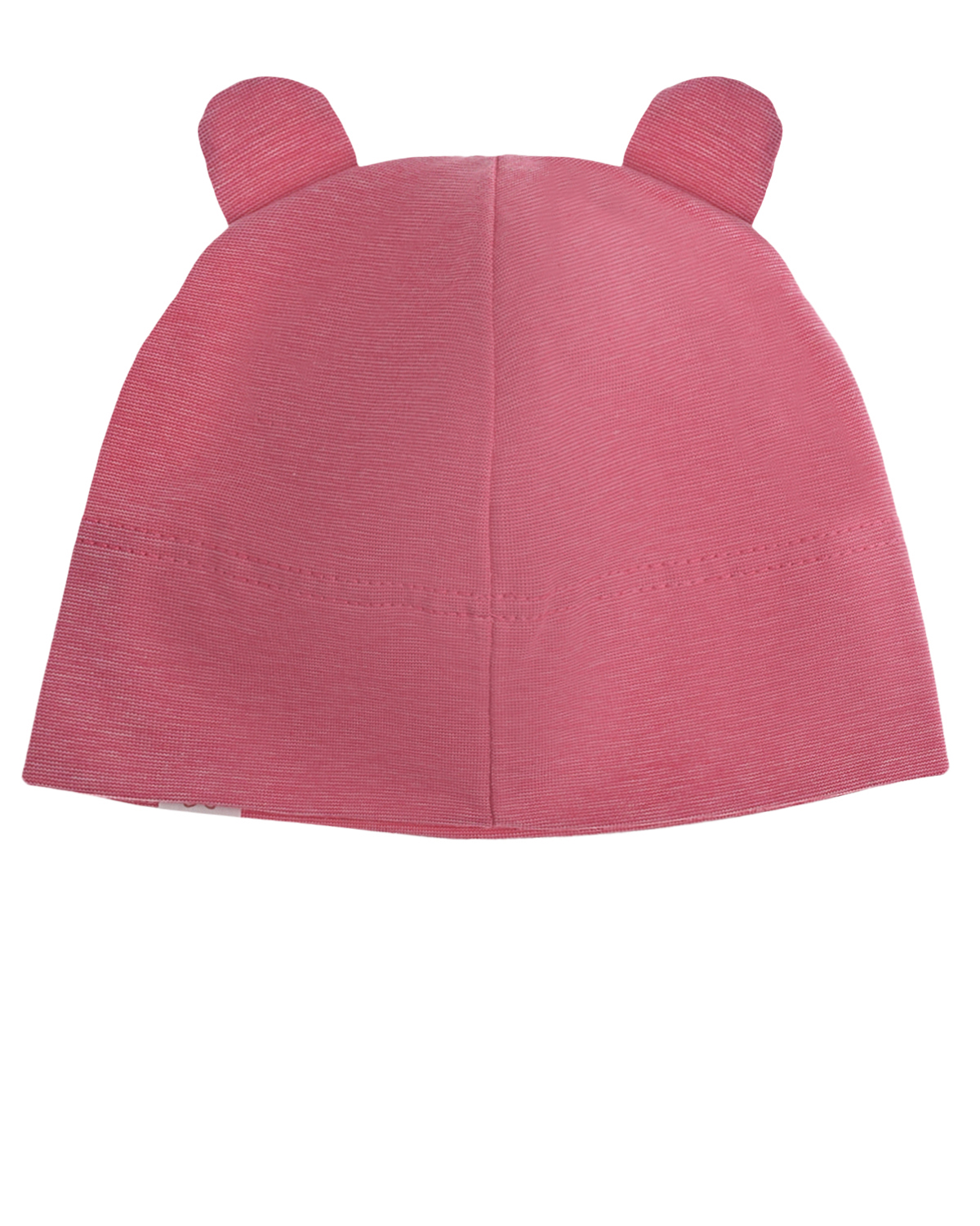 Розовая трикотажная шапка с декоративными ушками