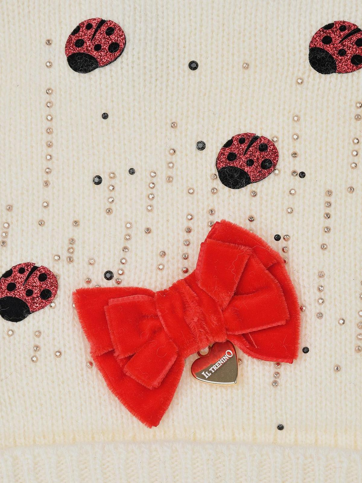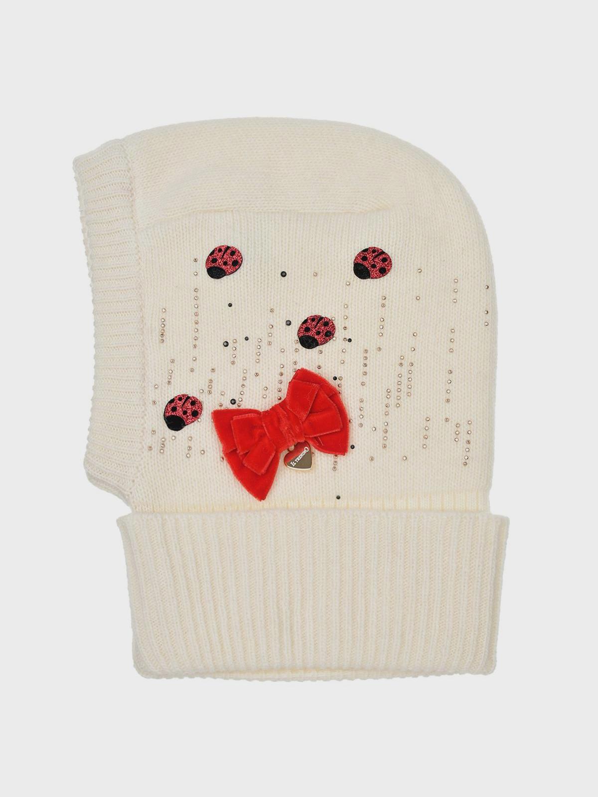 Главная / Малыши / Головные уборы / Шлемы / Il Trenino / Кремовая шапка-шлем с красным бантом
