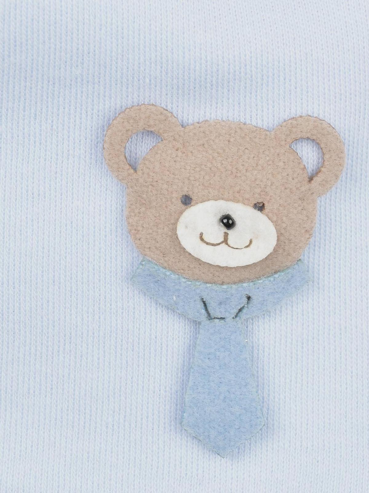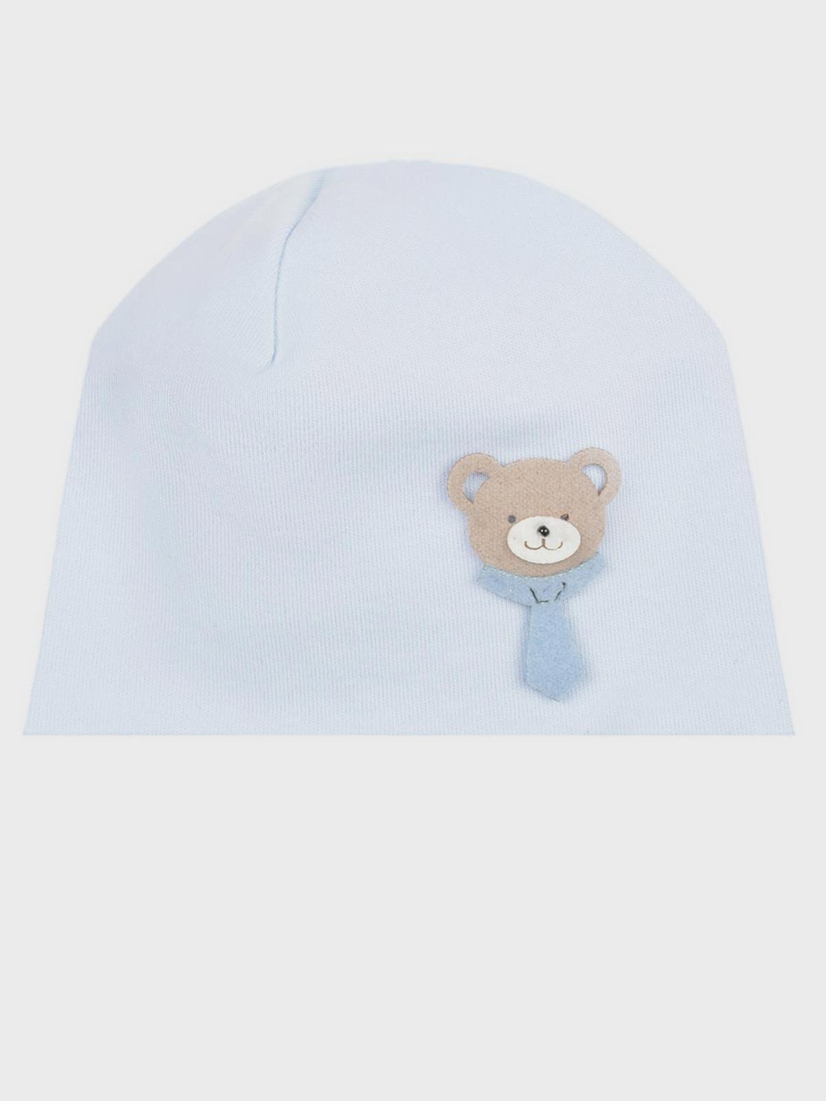 Голубая шапка с аппликацией "медвежонок"