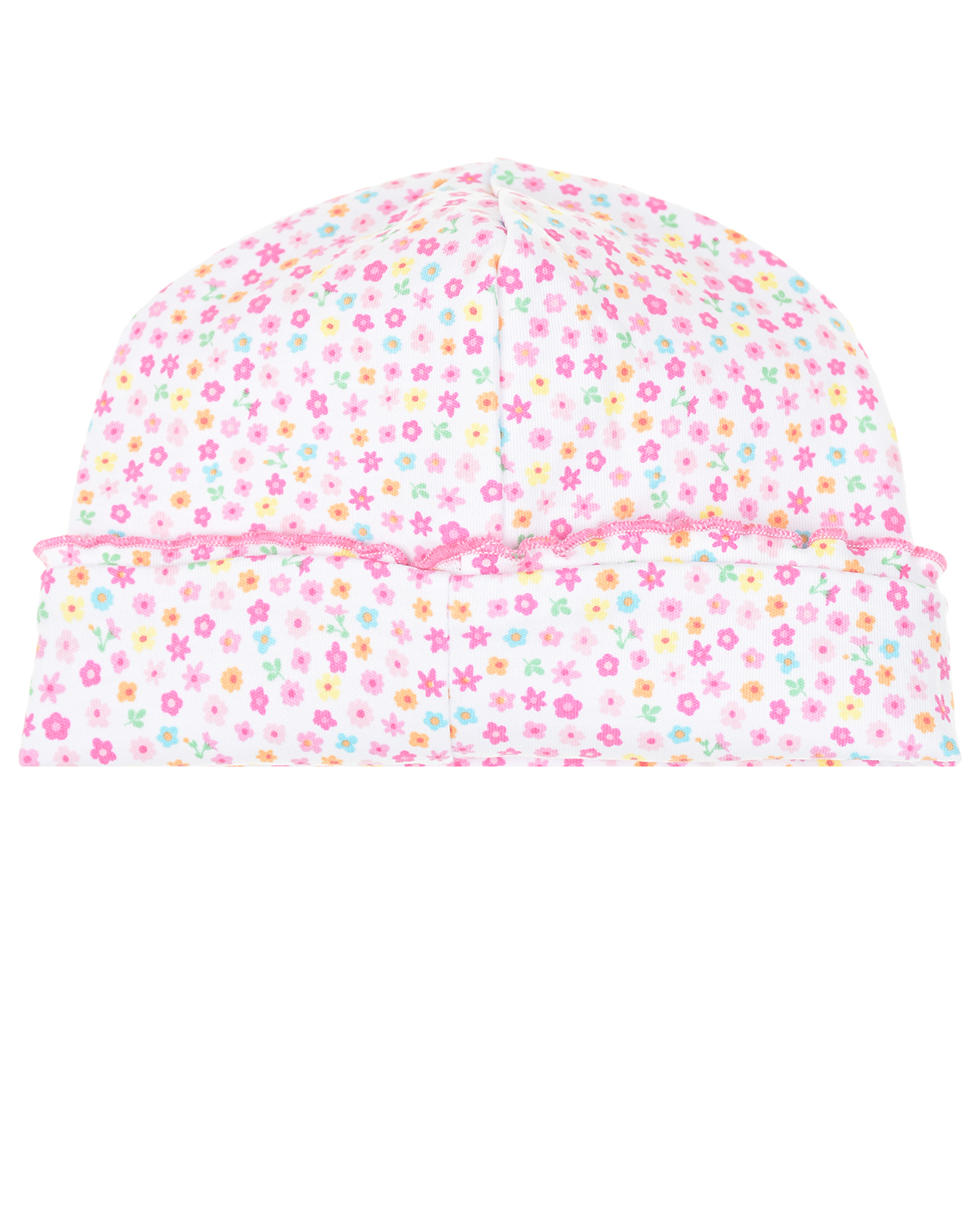 Шапка с цветочным принтом и розовым кантом