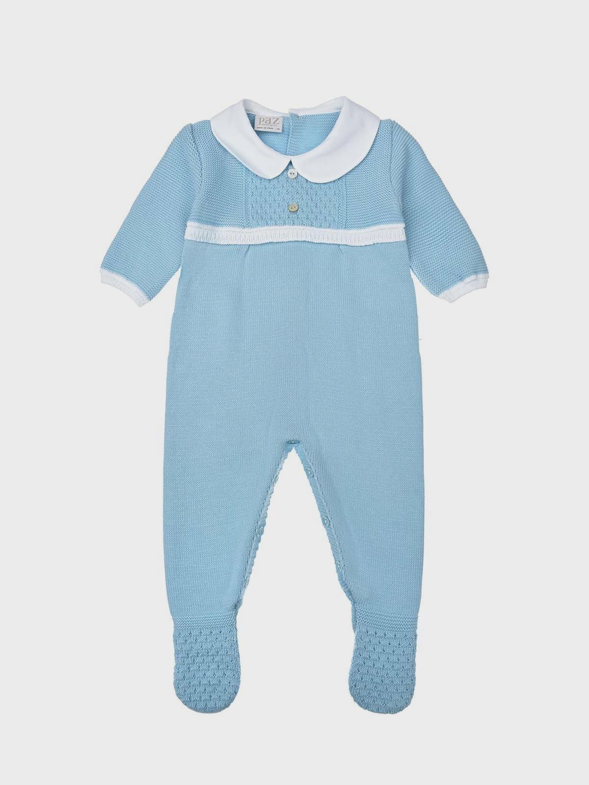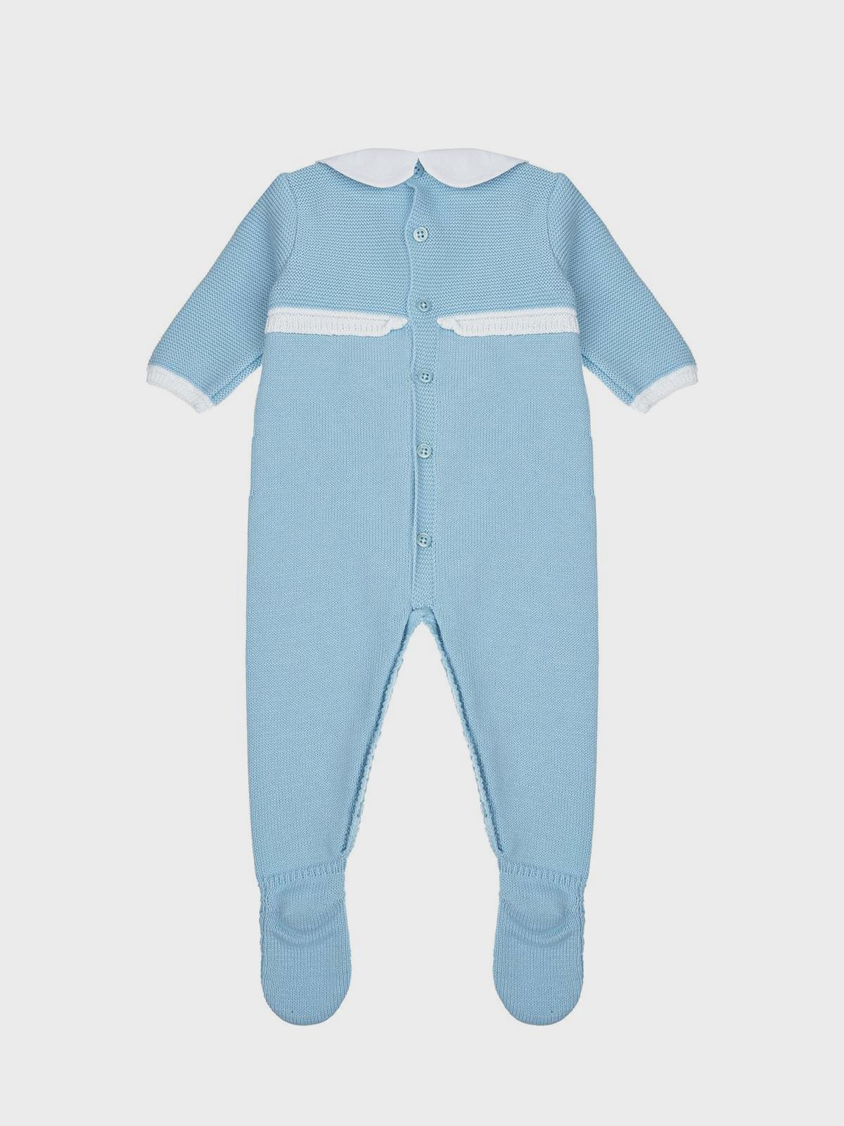 Голубой комбинезон с белым воротником