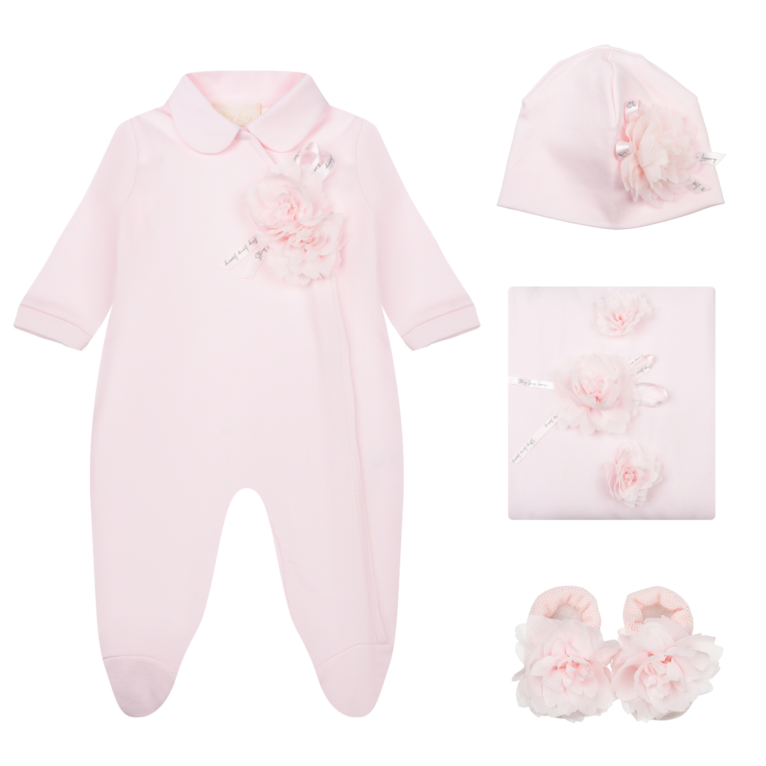 Подарочный набор: комбинезон, шапка, пинетки и одеяло, розовый