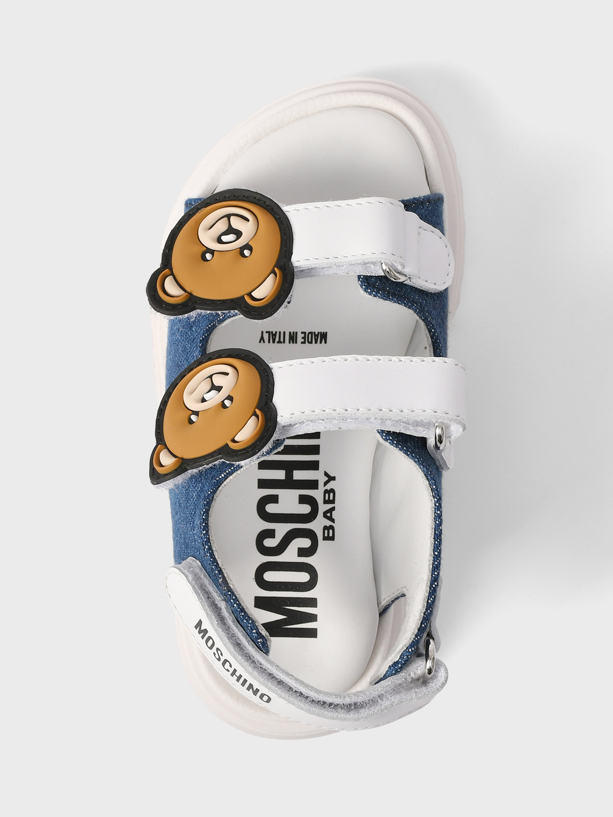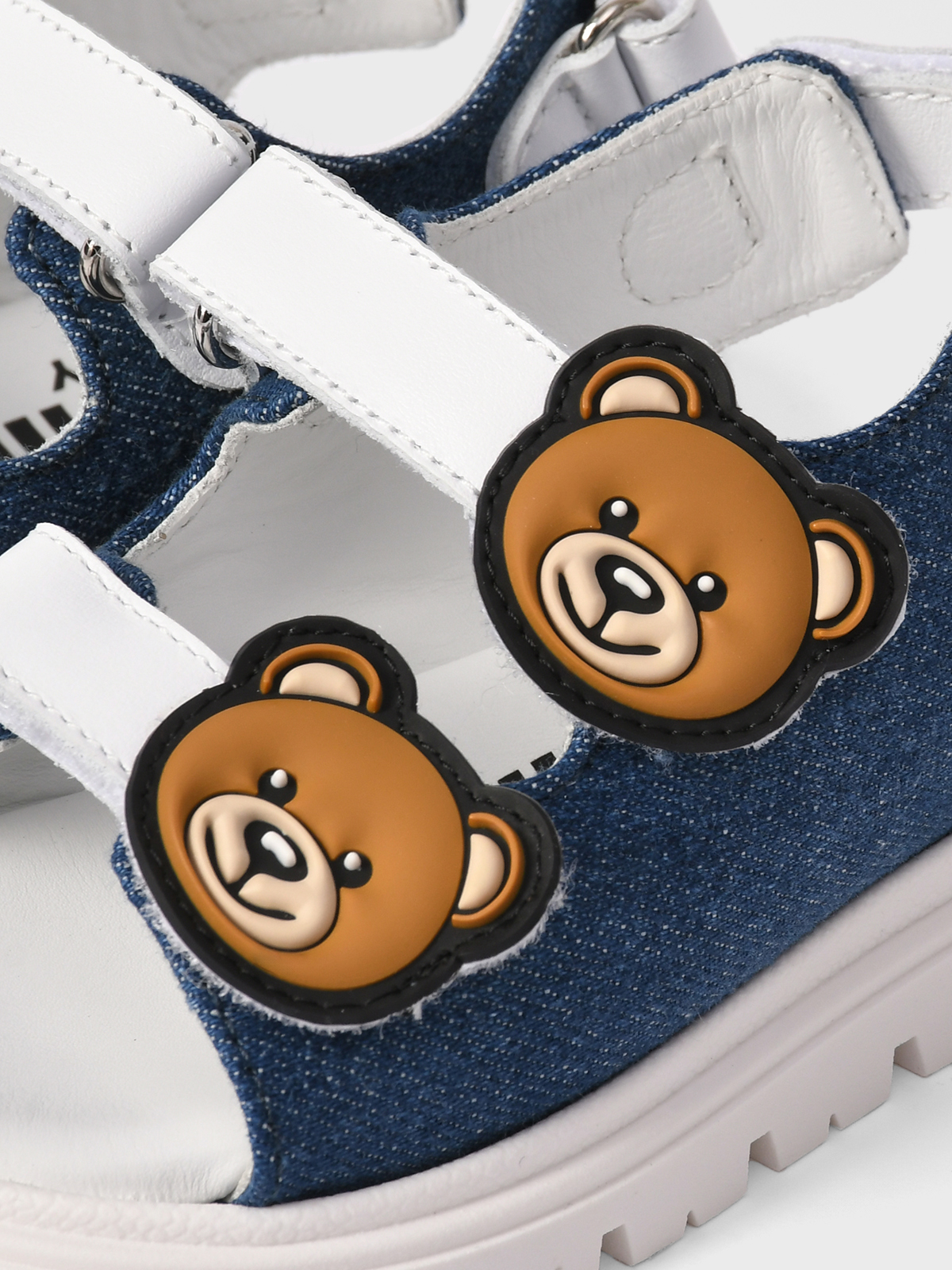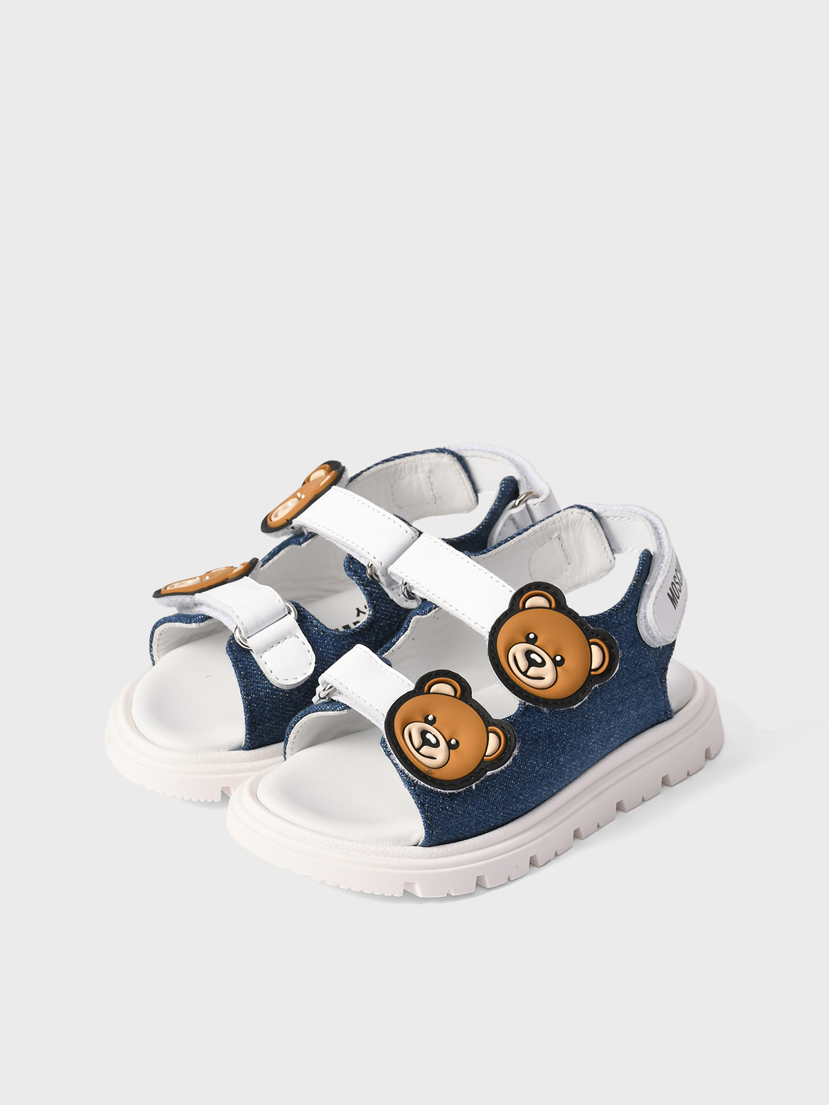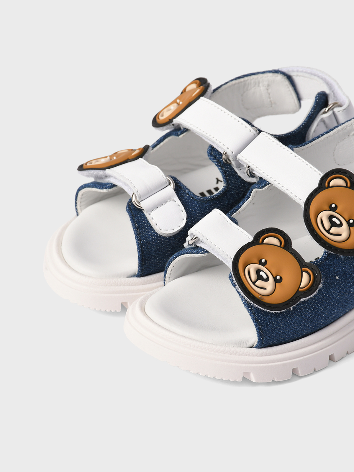 Главная / Малыши / Обувь / Босоножки, Сандалии / Moschino / Джинсовые босоножки с кожаными вставками