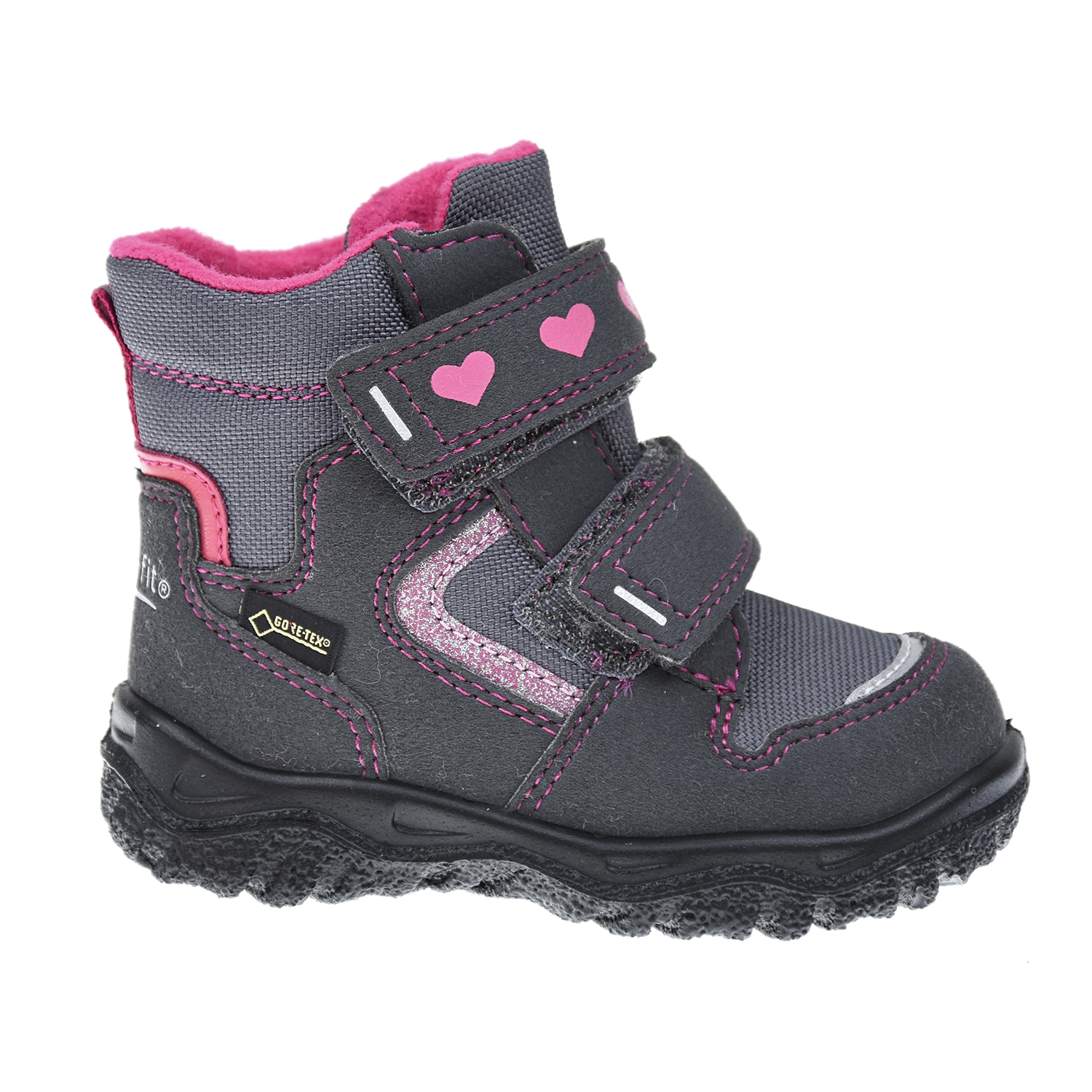 Главная / Малыши / Обувь / Сапоги, Полусапоги / SUPERFIT / Серые мембранные сапоги Husky1 с сердечками на застежке
