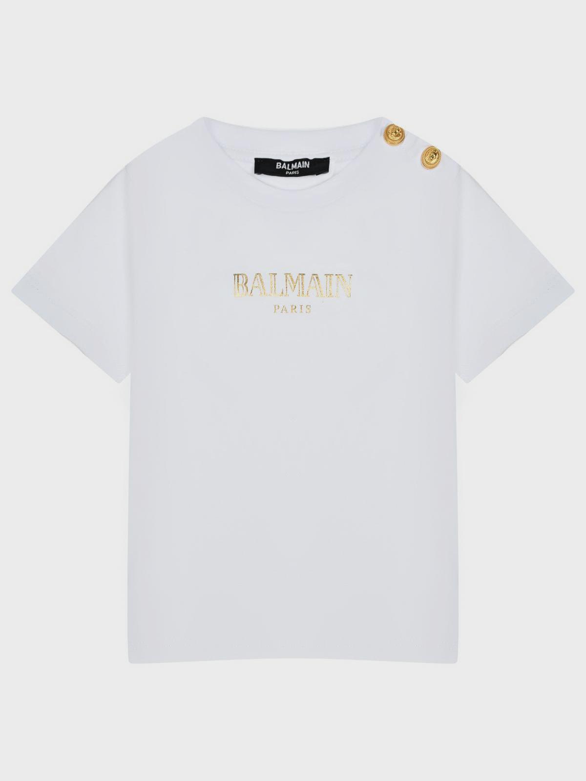Футболка с лого и пуговицами на плече, белая