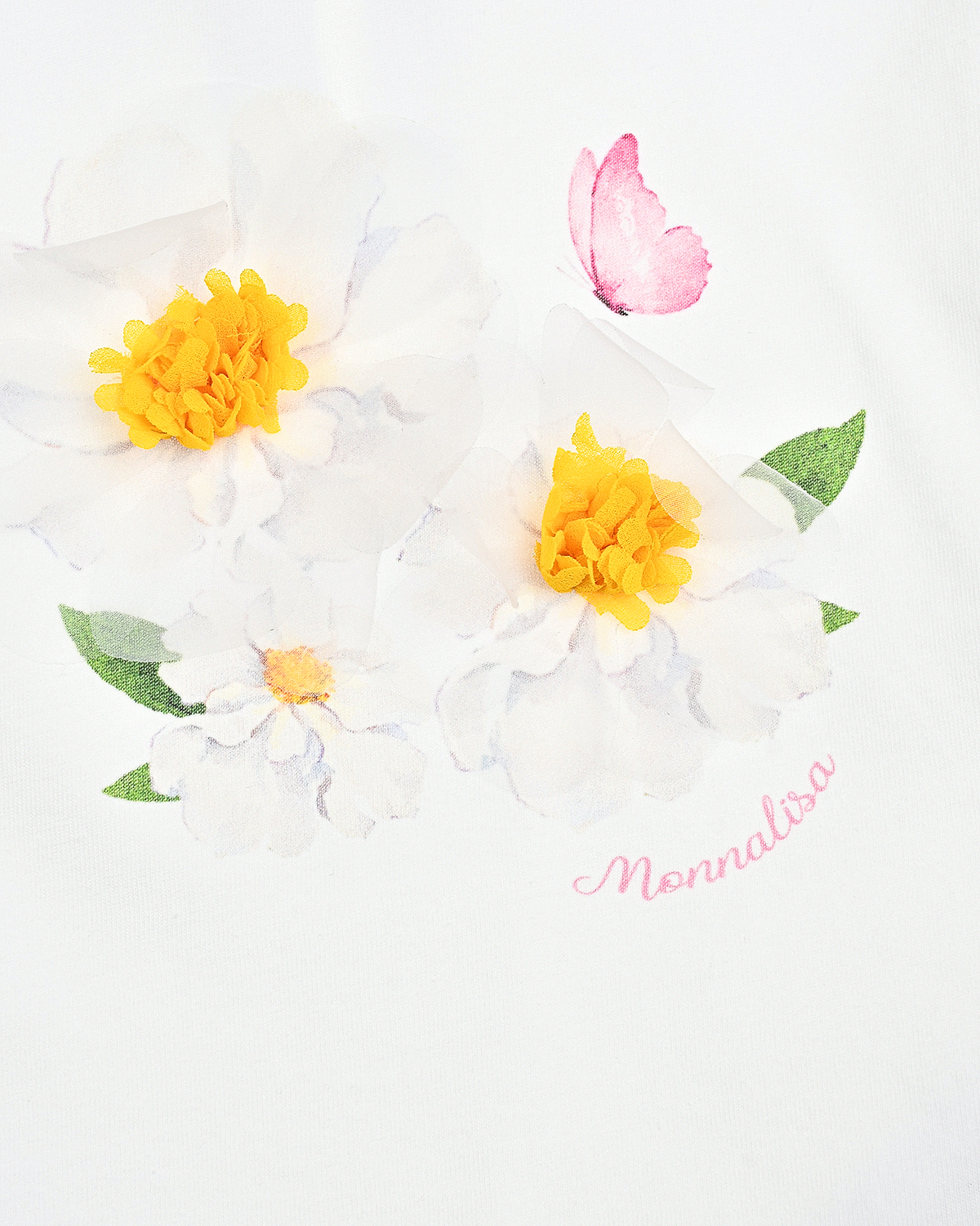Главная / Малыши / Одежда / Футболки, Топы, Майки / MonnaLisa / Футболка с объемными бело-желтыми цветами