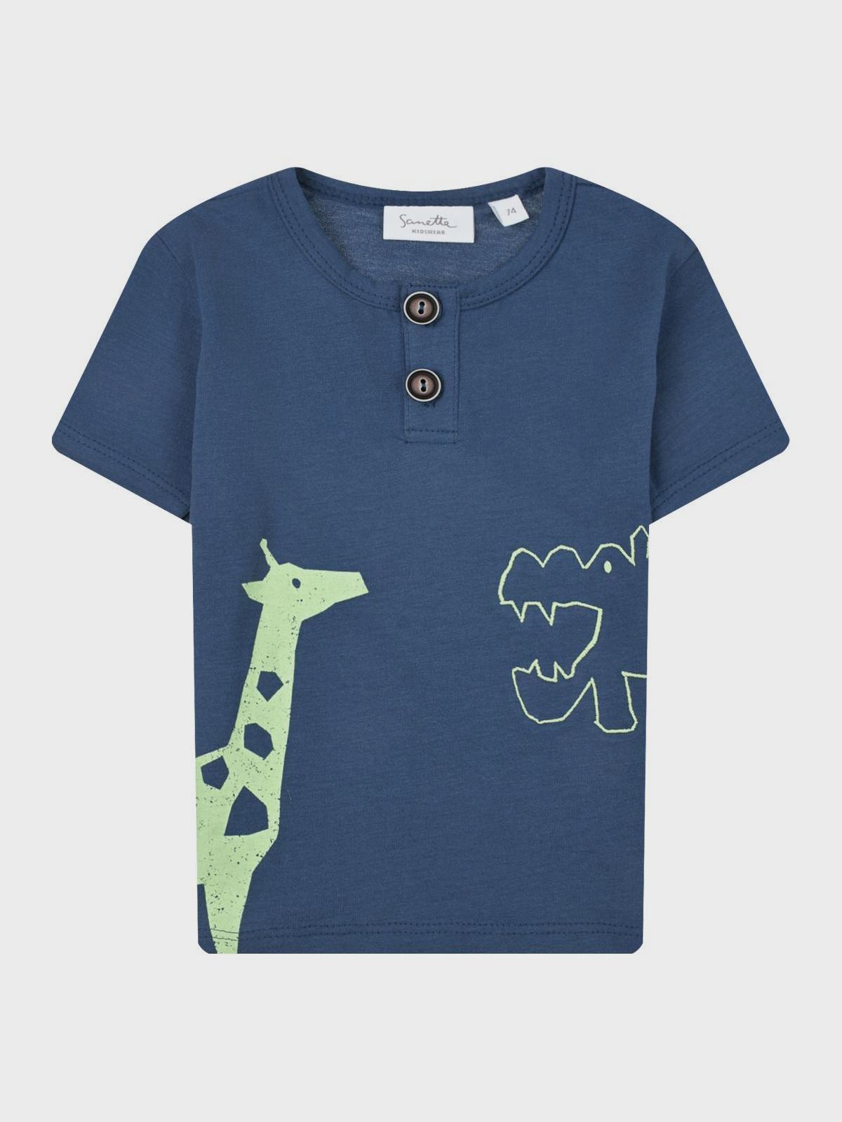 Главная / Малыши / Одежда / Футболки, Топы, Майки / Sanetta / Темно-синяя футболка с принтом "жираф и бегемот"
