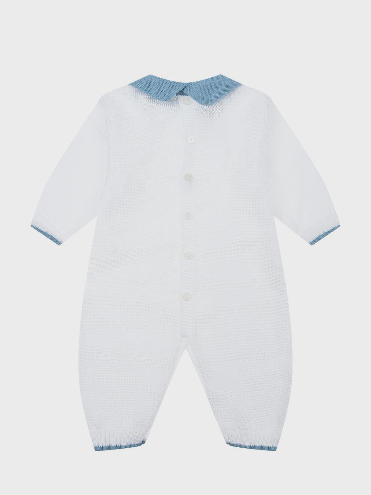 Белый комбинезон с синим воротником