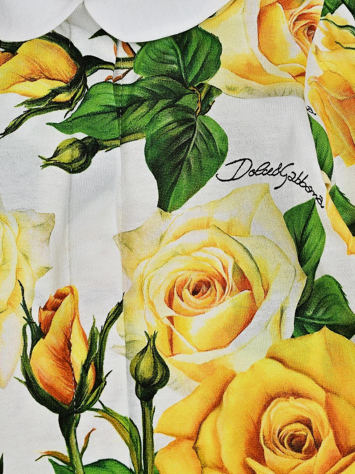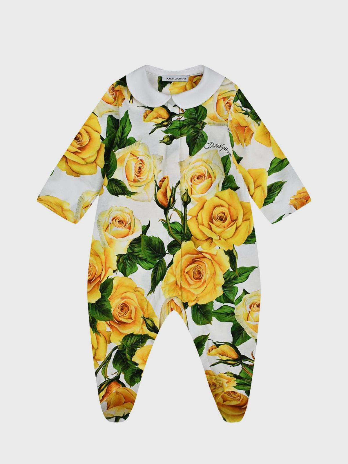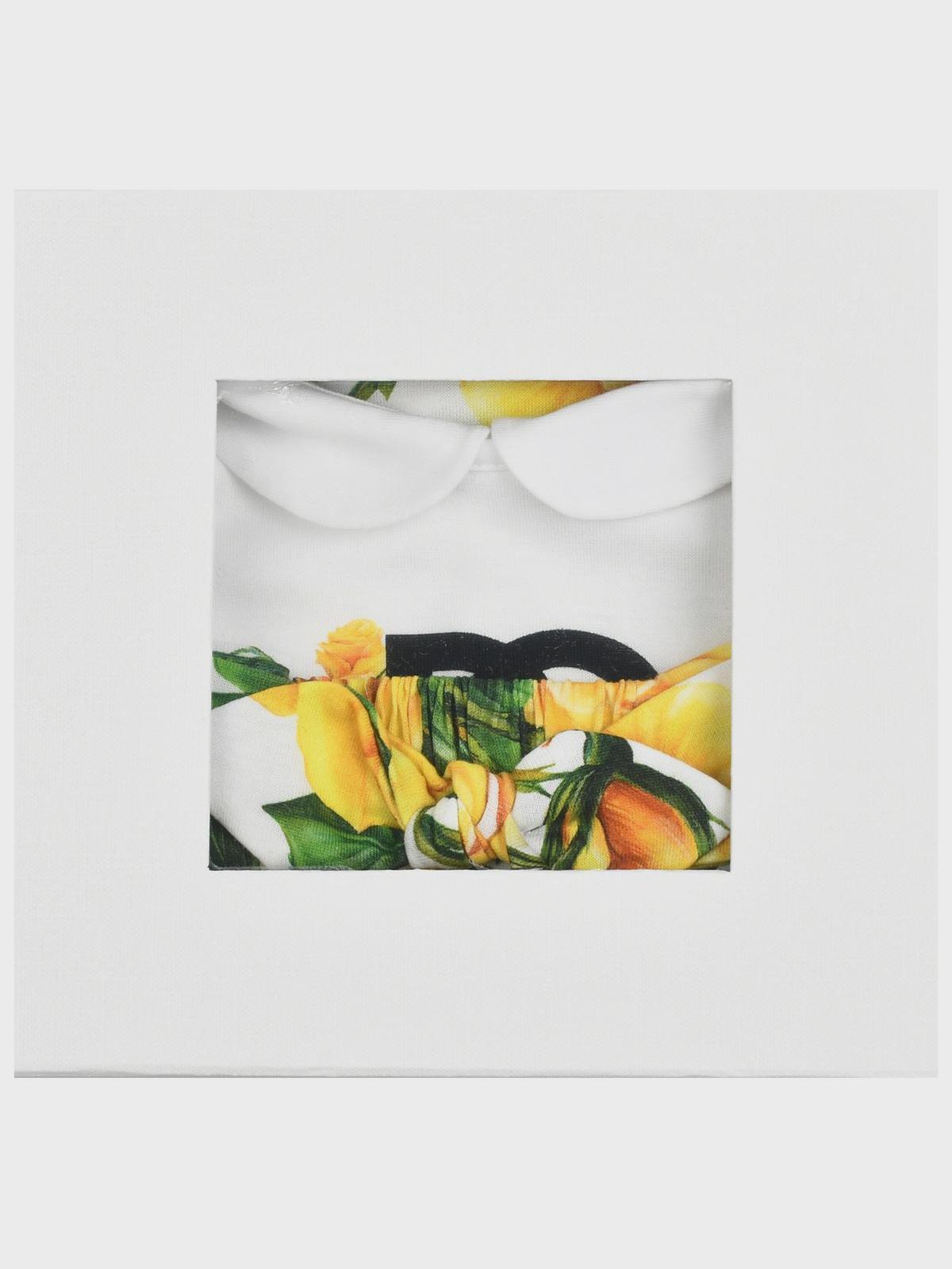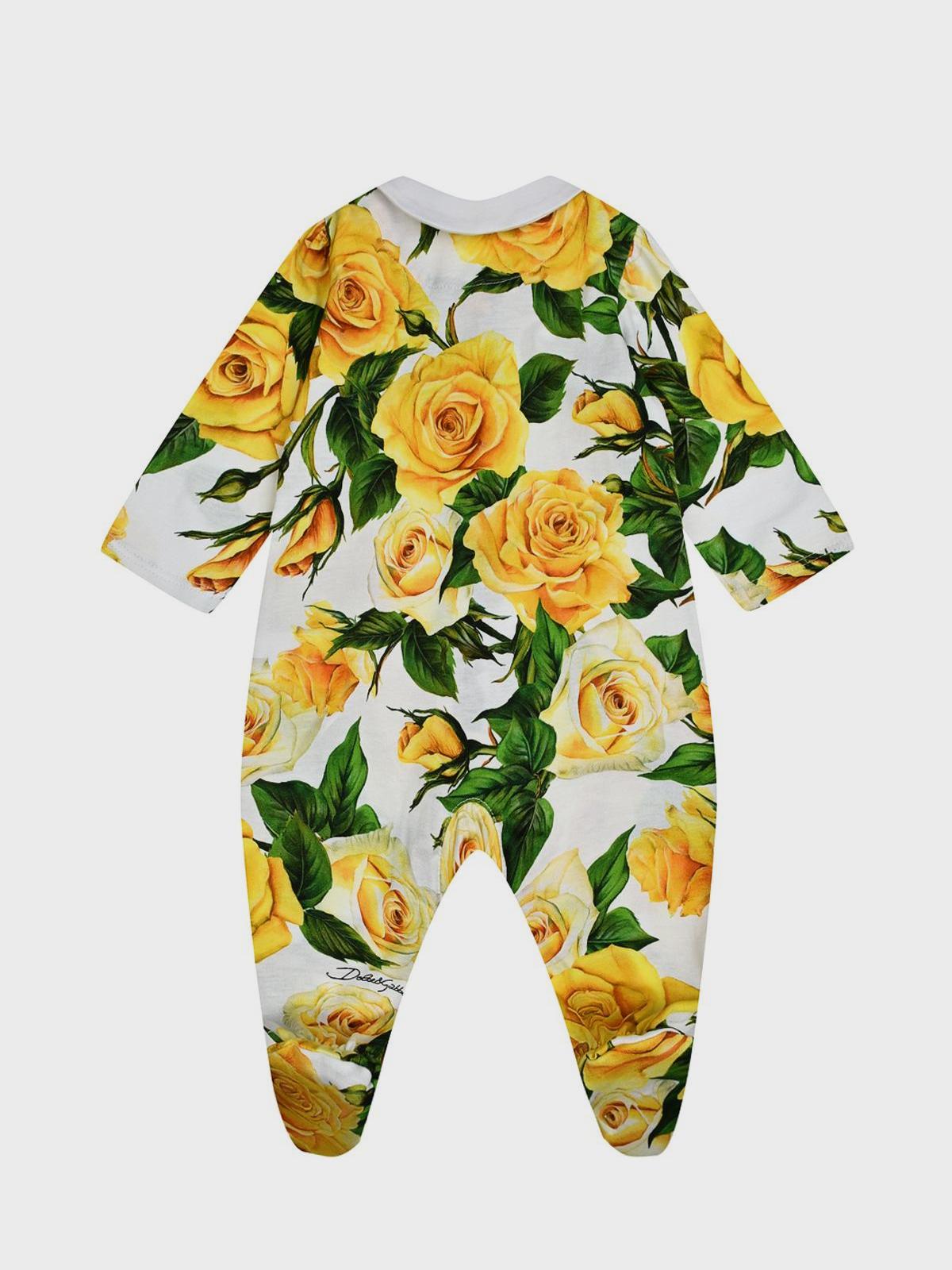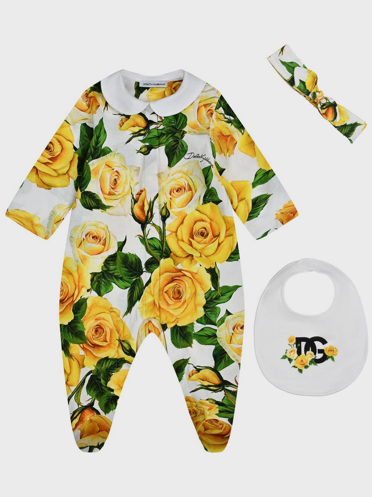 Главная / Малыши / Одежда / Комплекты / Dolce&Gabbana / Комплект: комбинезон, повязка и слюнявчик, принт "желтые розы"