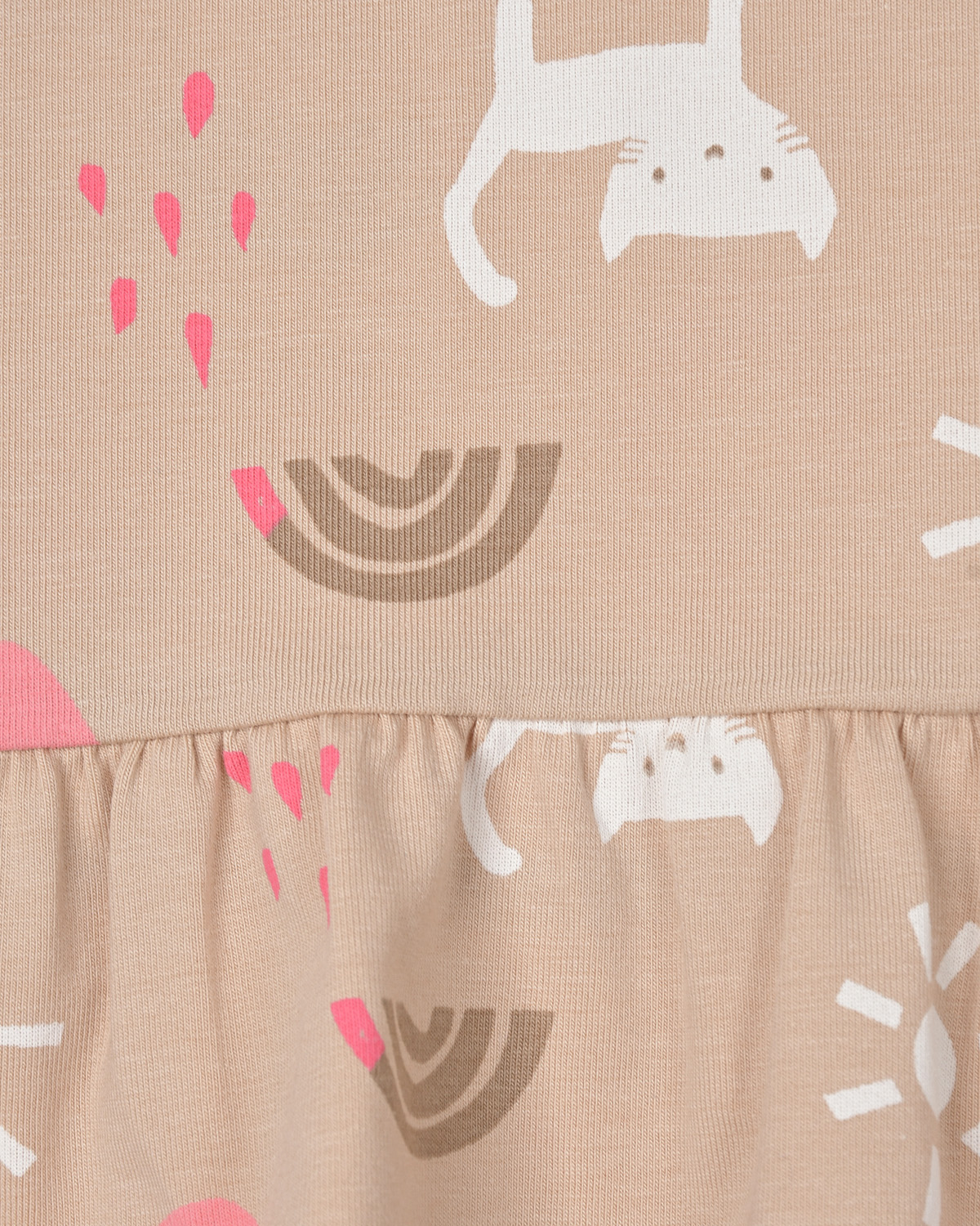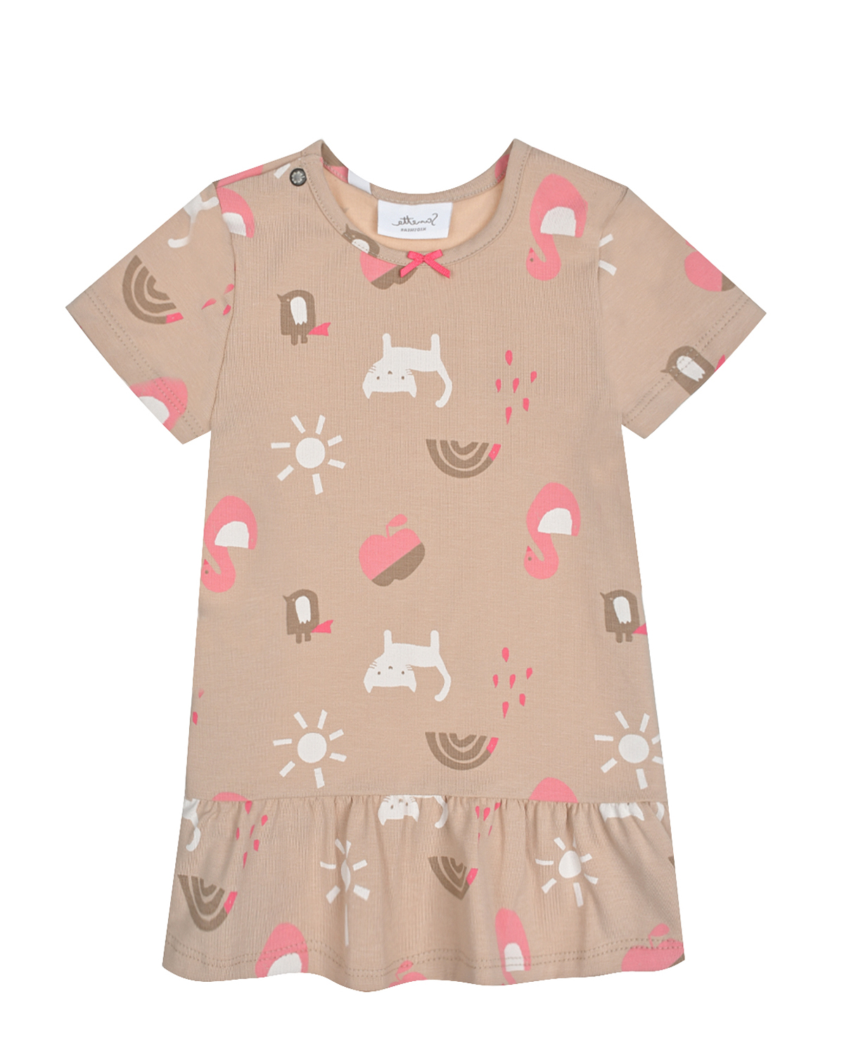 Главная / Малыши / Одежда / Платья, Сарафаны / Sanetta / Бежевое платье с принтом "лебеди и коты"