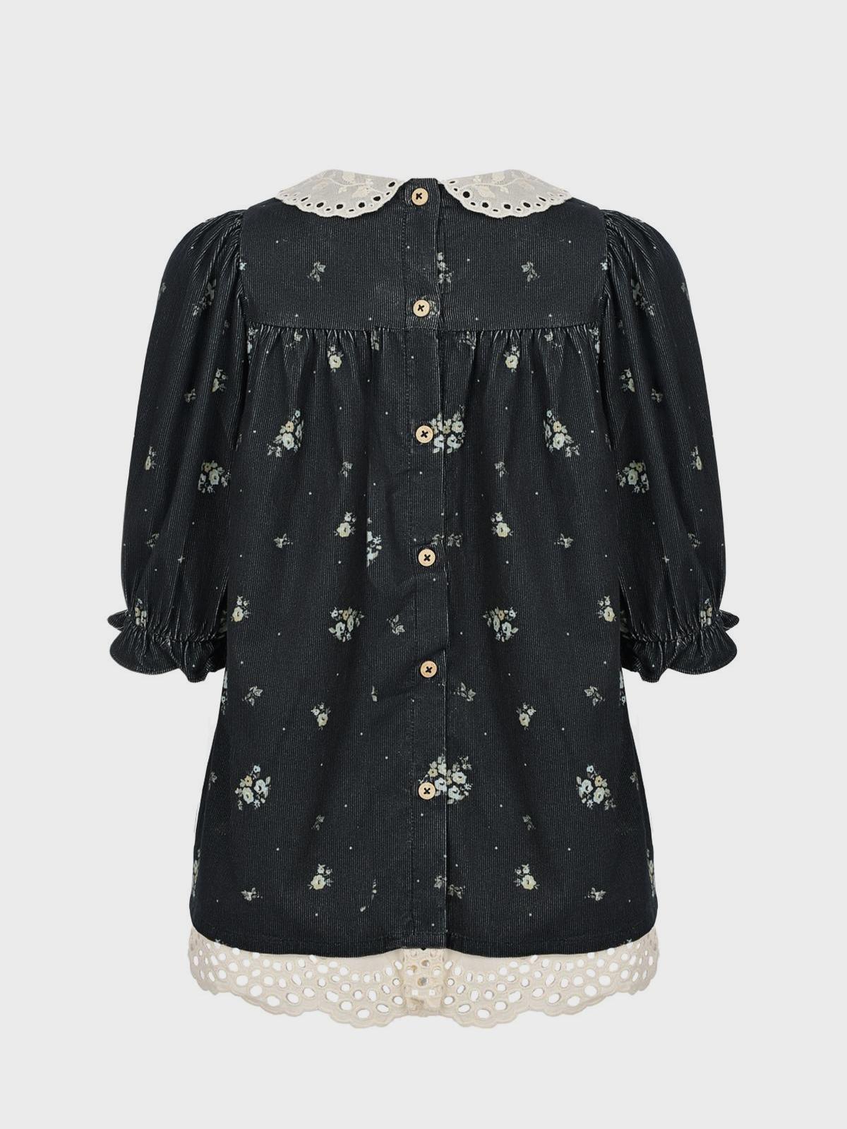 Вельветовое платье с белым воротником и подолом, черное