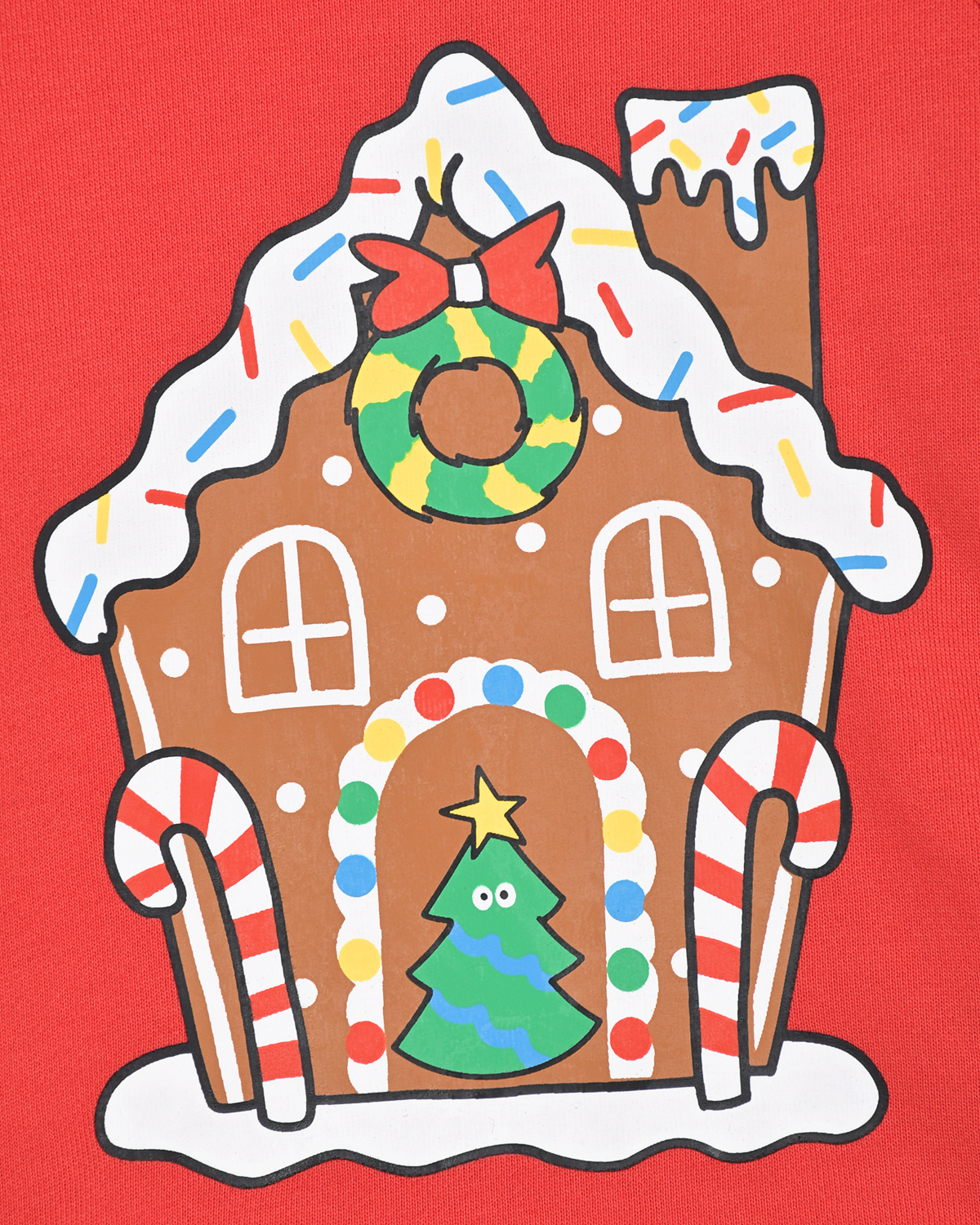 Красный свитшот с принтом "пряничный домик"