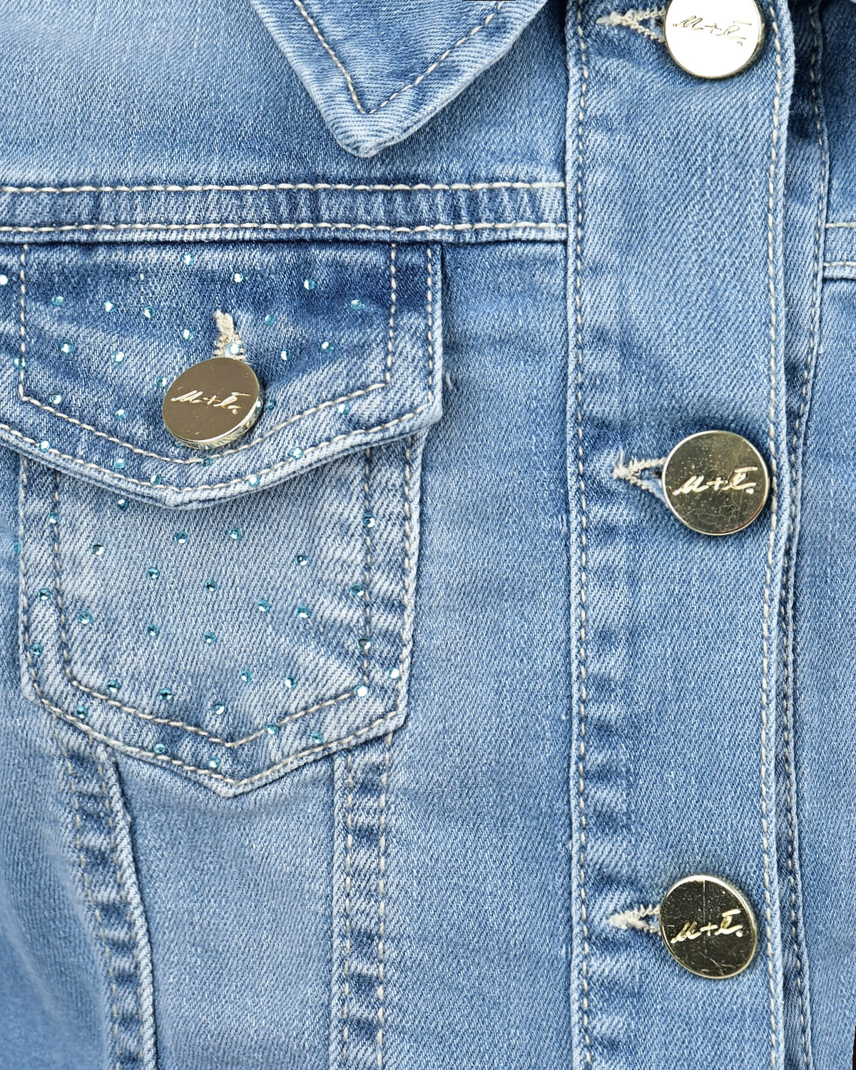 Джинсовая куртка со стразами на карманах