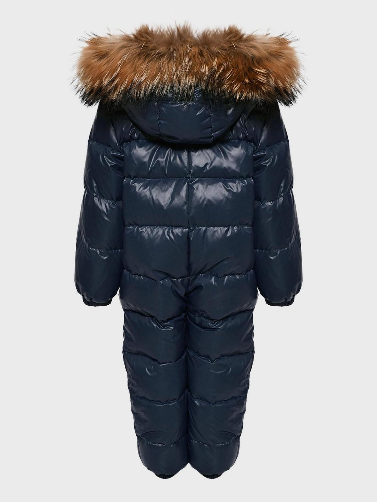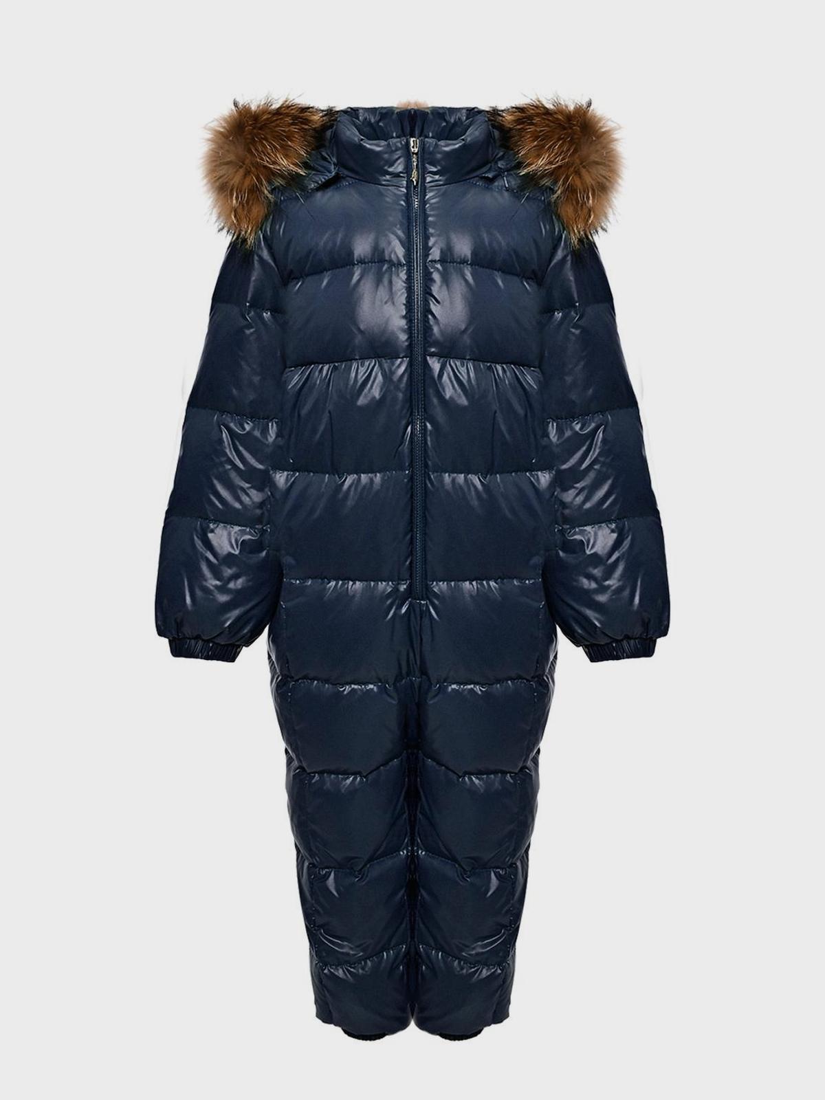 Комбинезон с отделкой мехом енота, темно-синий