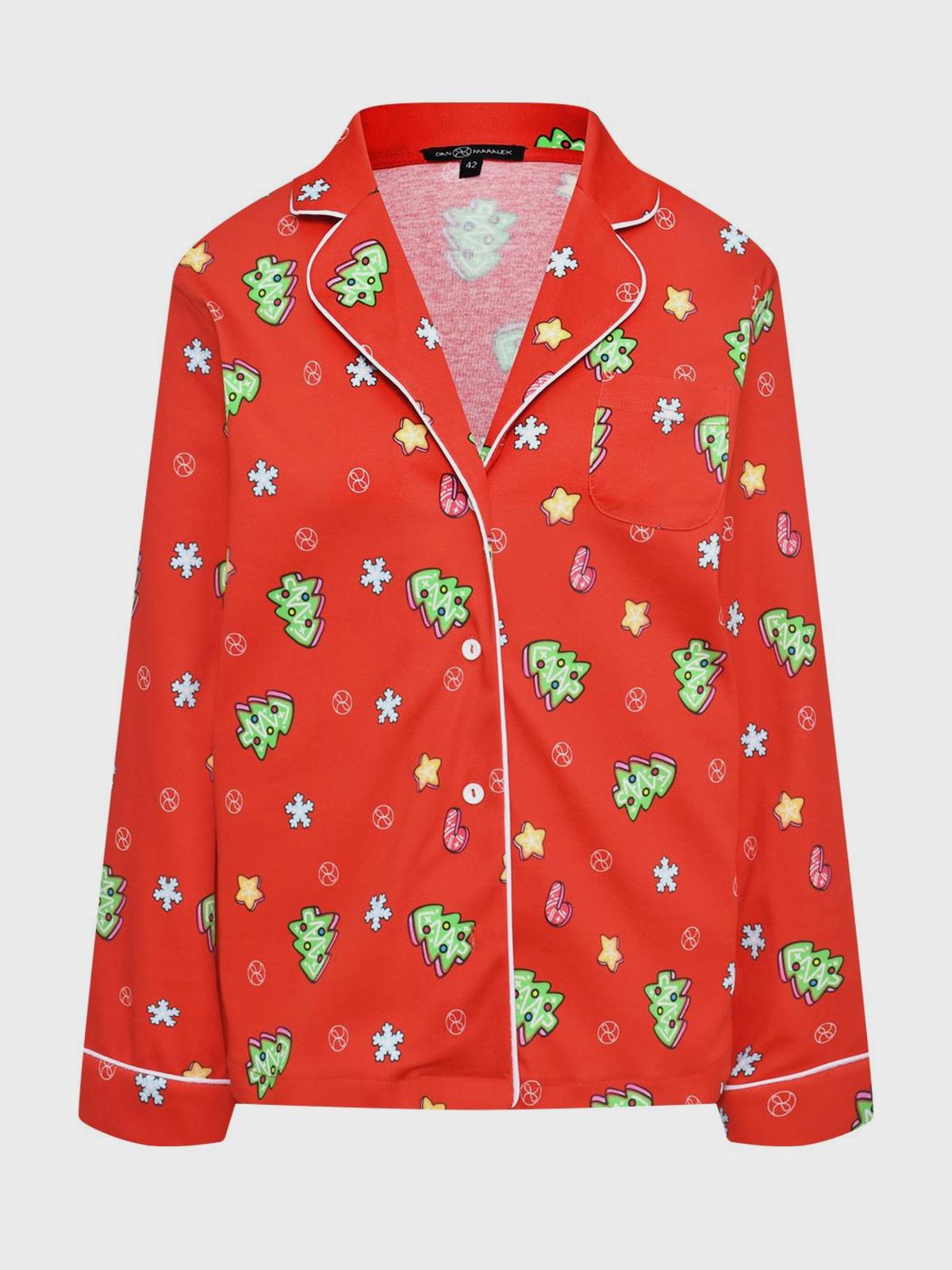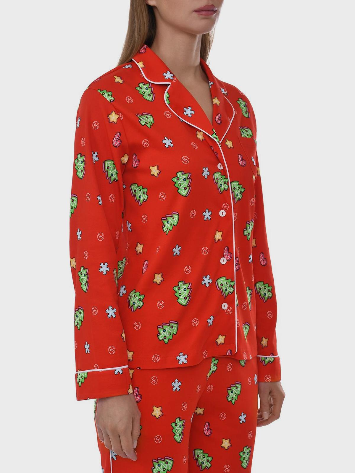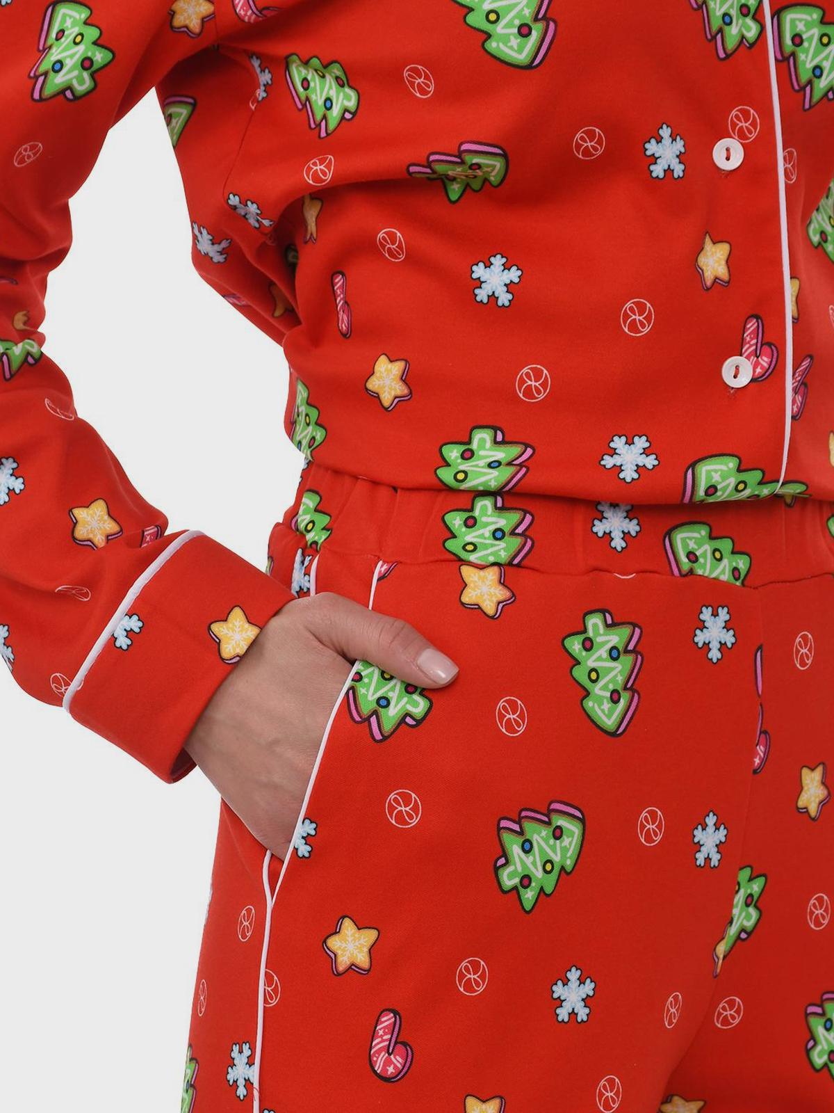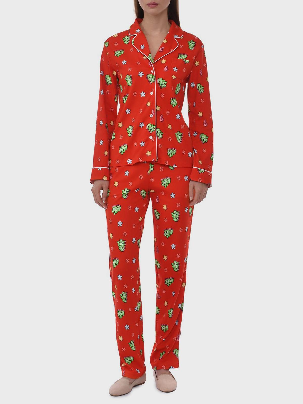 Пижама: брюки и рубашка с новогодним принтом "ёлочки"