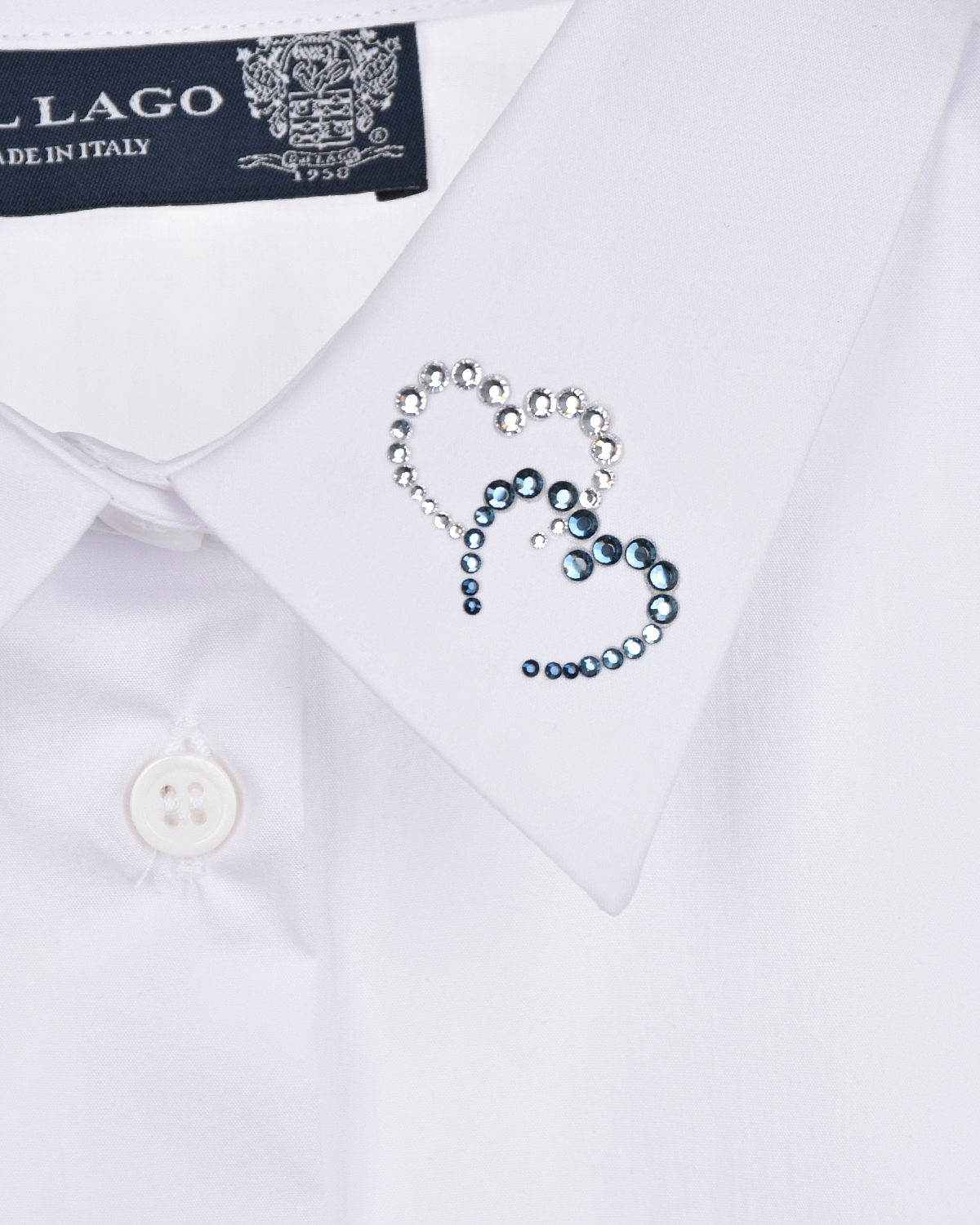 Белая рубашка со стразами на воротнике