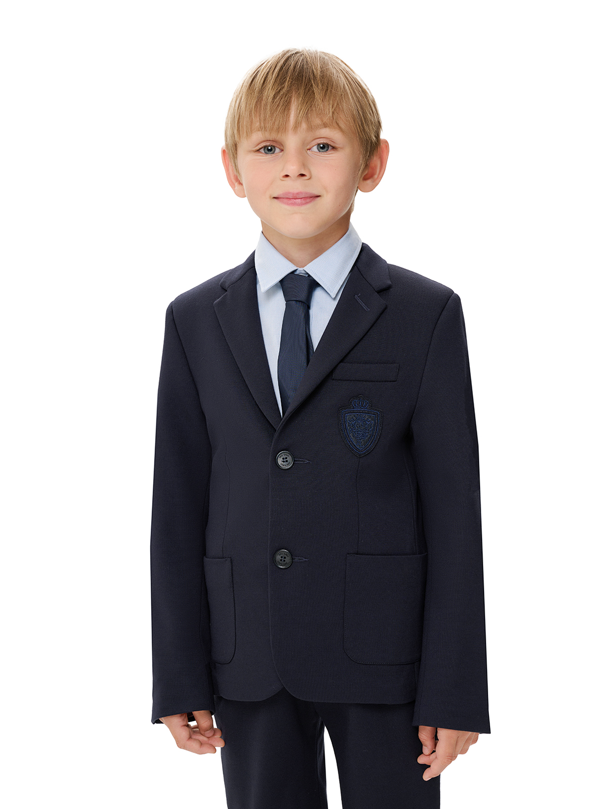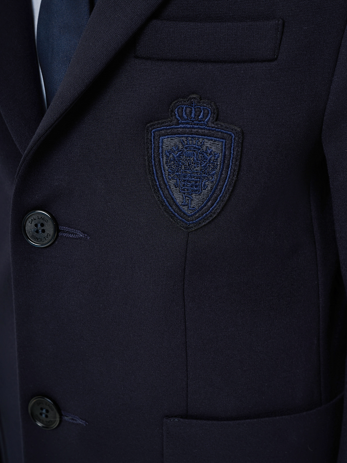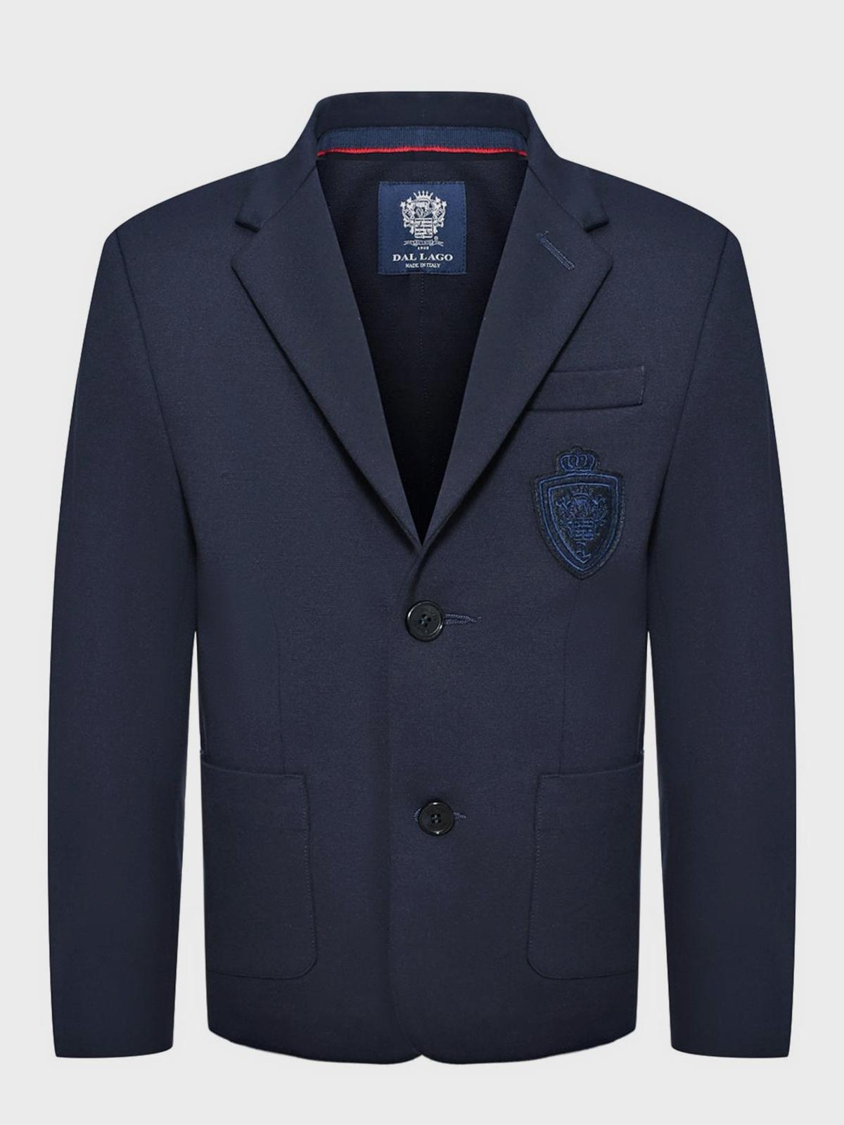 Пиджак трикотажный однобортный, герб в тон, синий