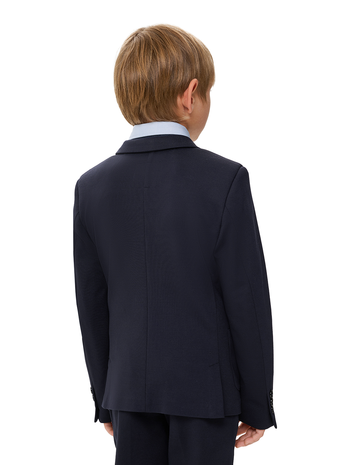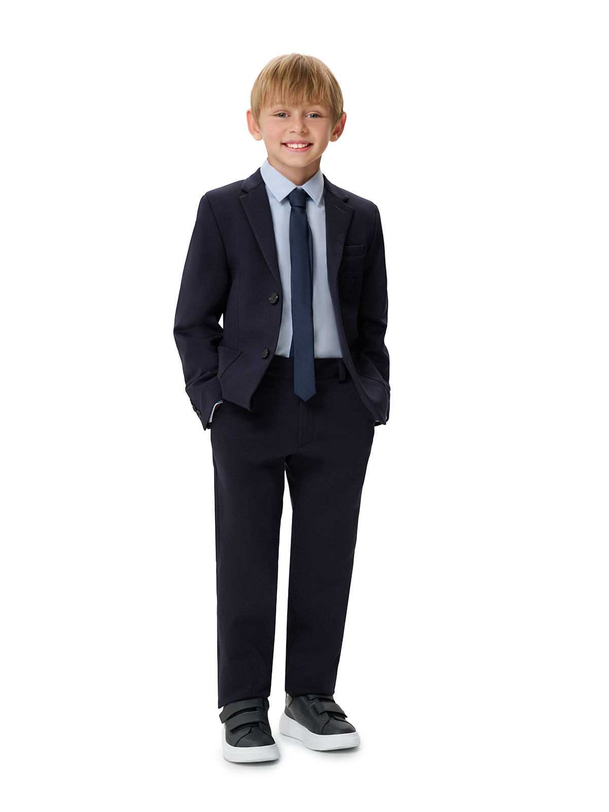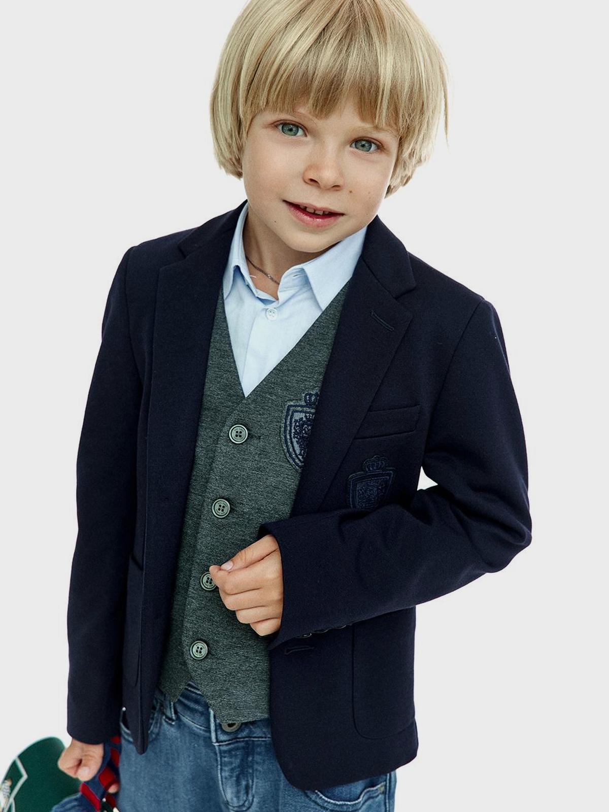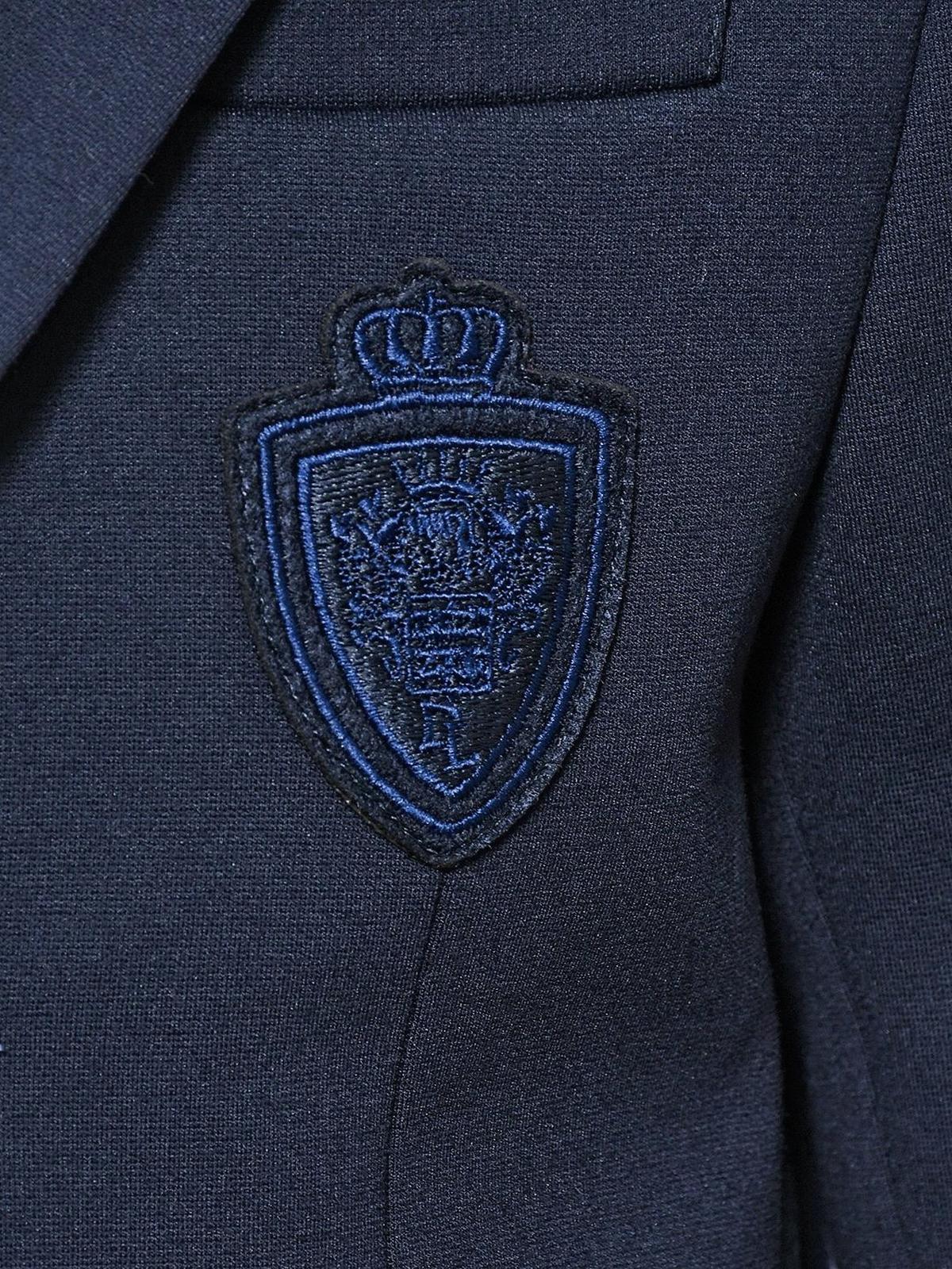Пиджак трикотажный однобортный, герб в тон, синий