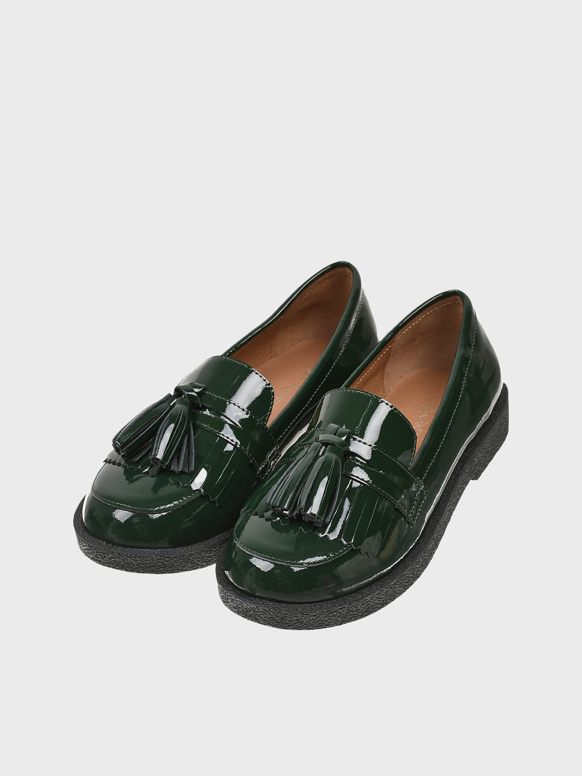 Лаковые лоферы с кисточками, зеленые
