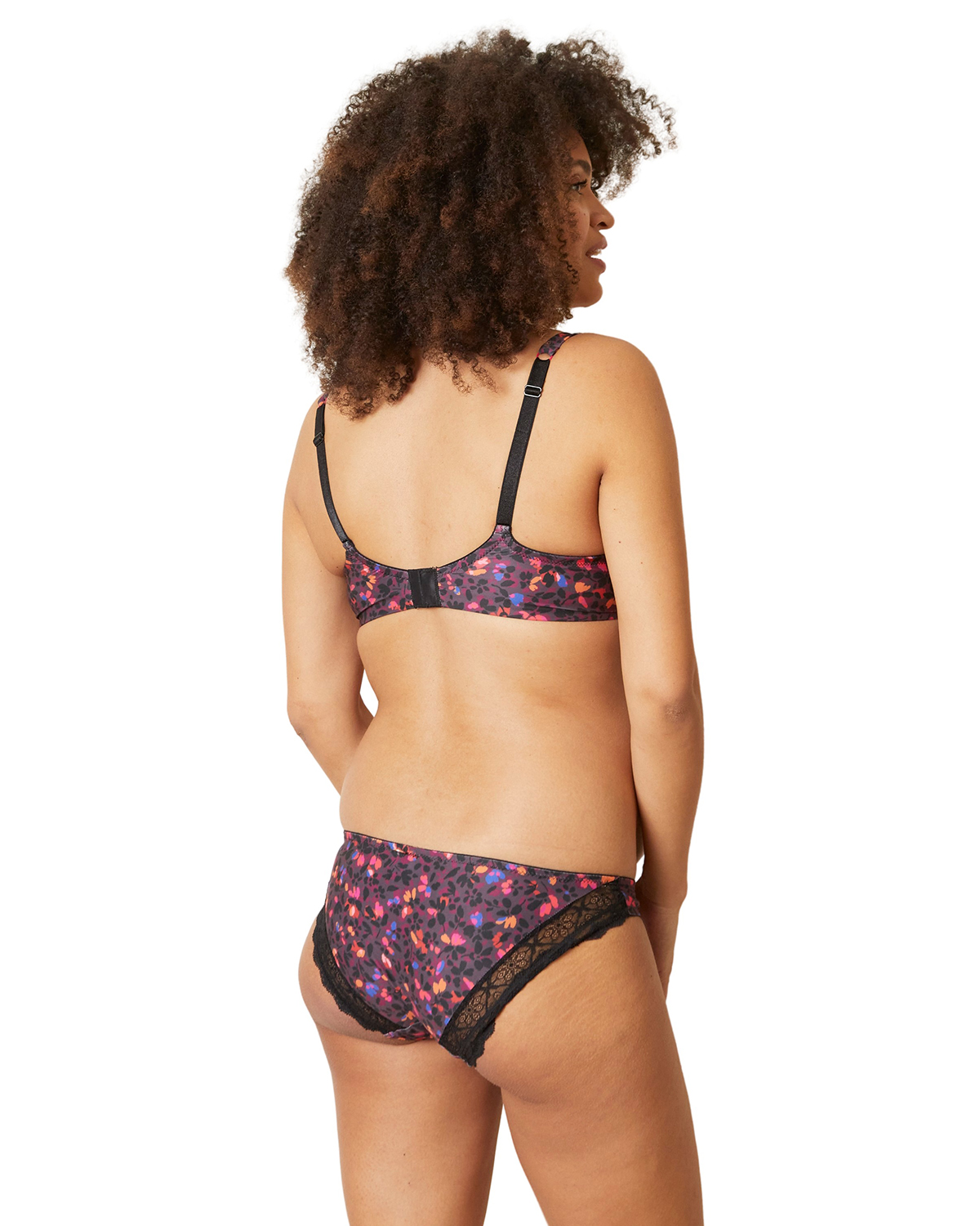 Трусы с цветочными узорами и черным кружевом, низкая посадка