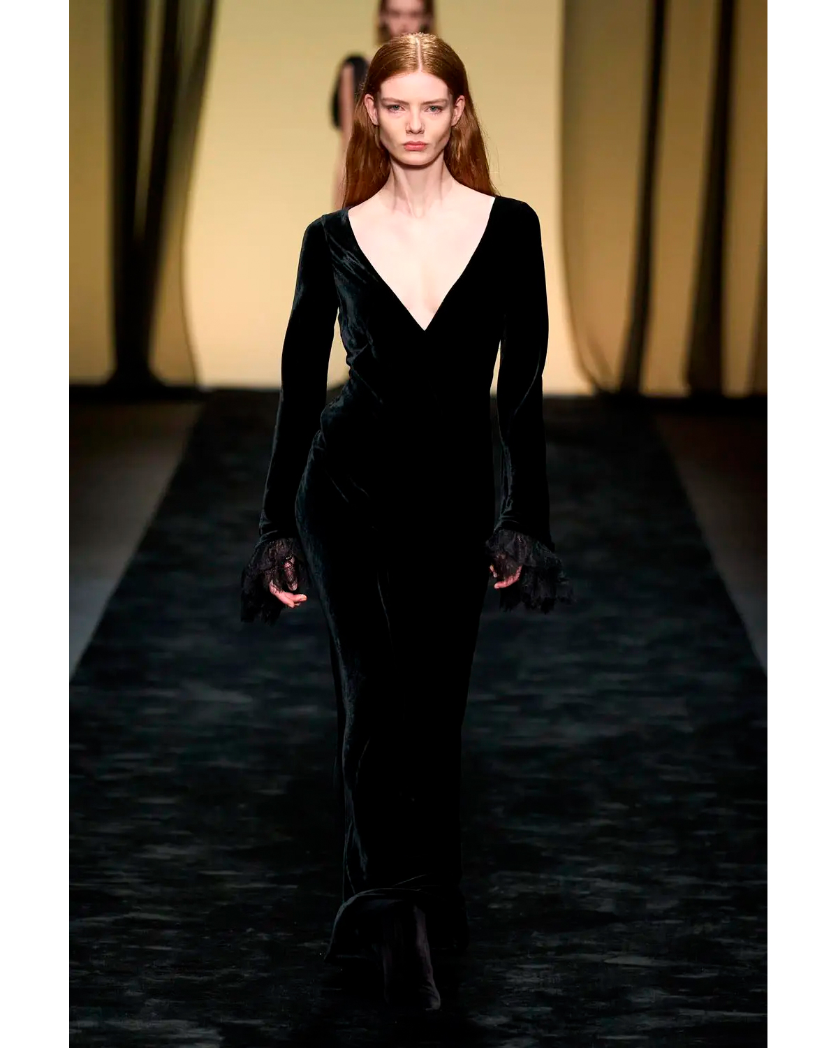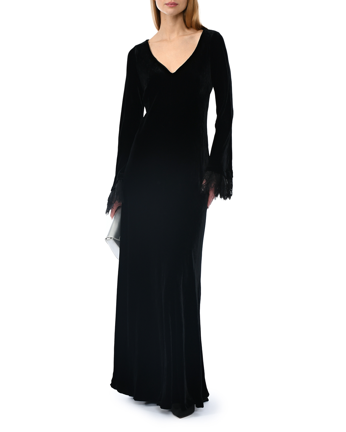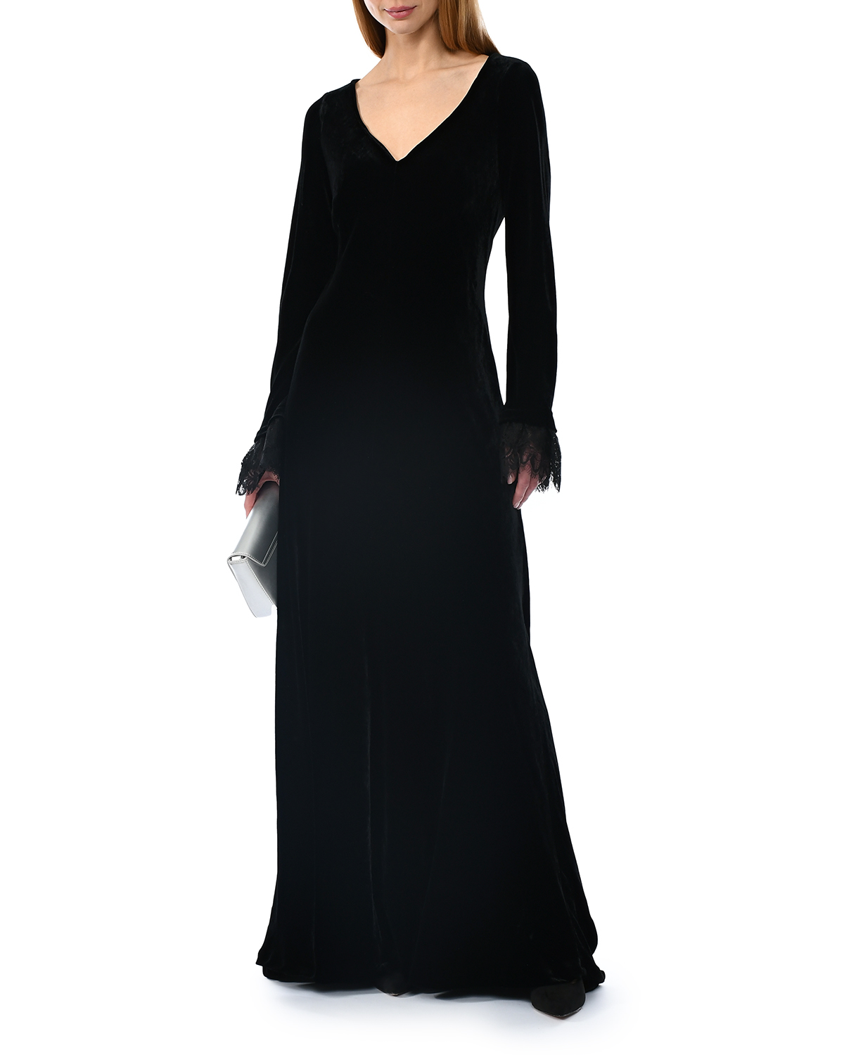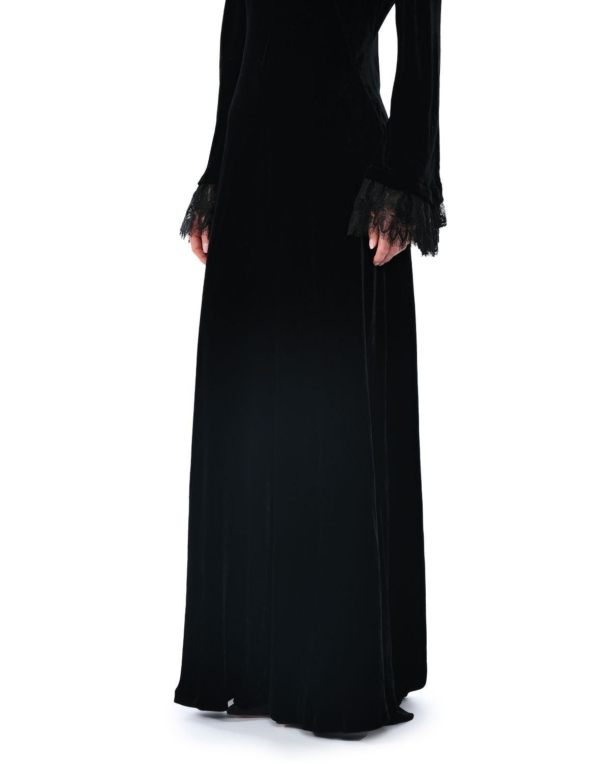 Бархатное платье с кружевными манжетами