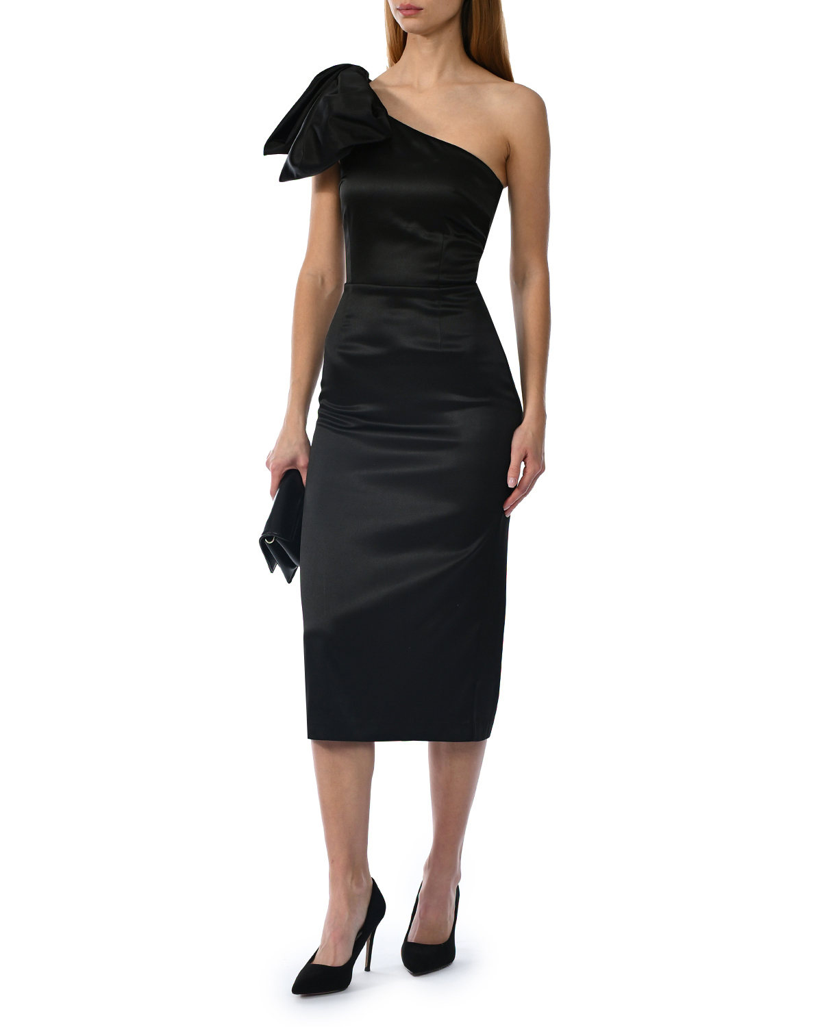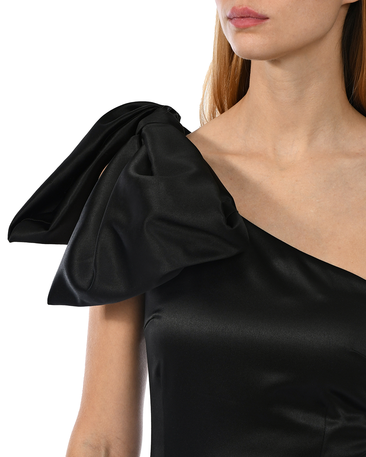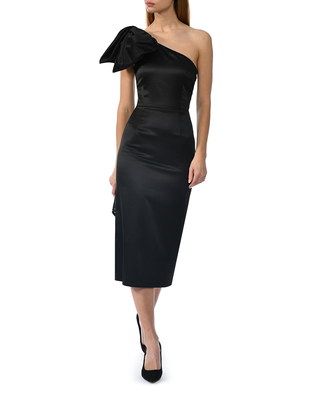 Платье атласное, на одно плечо с бантом