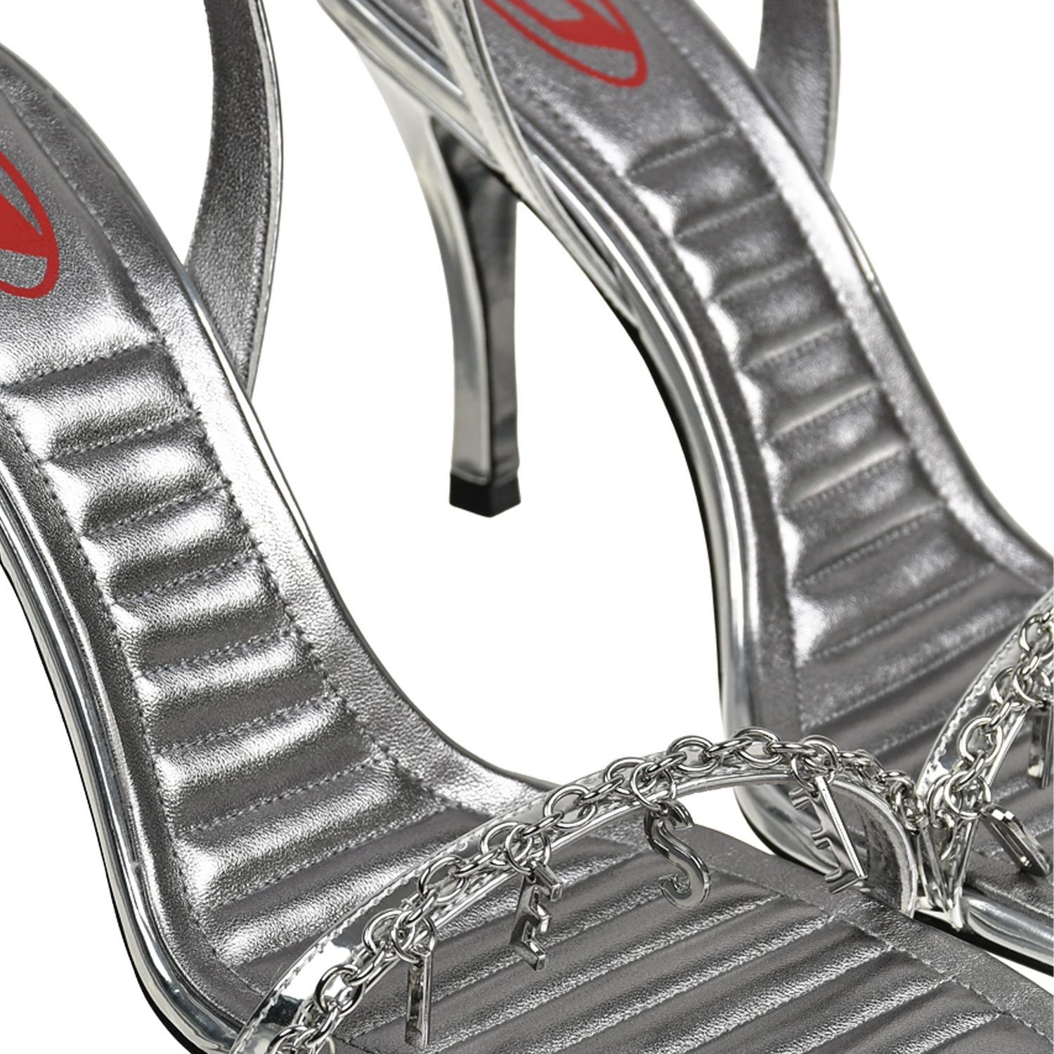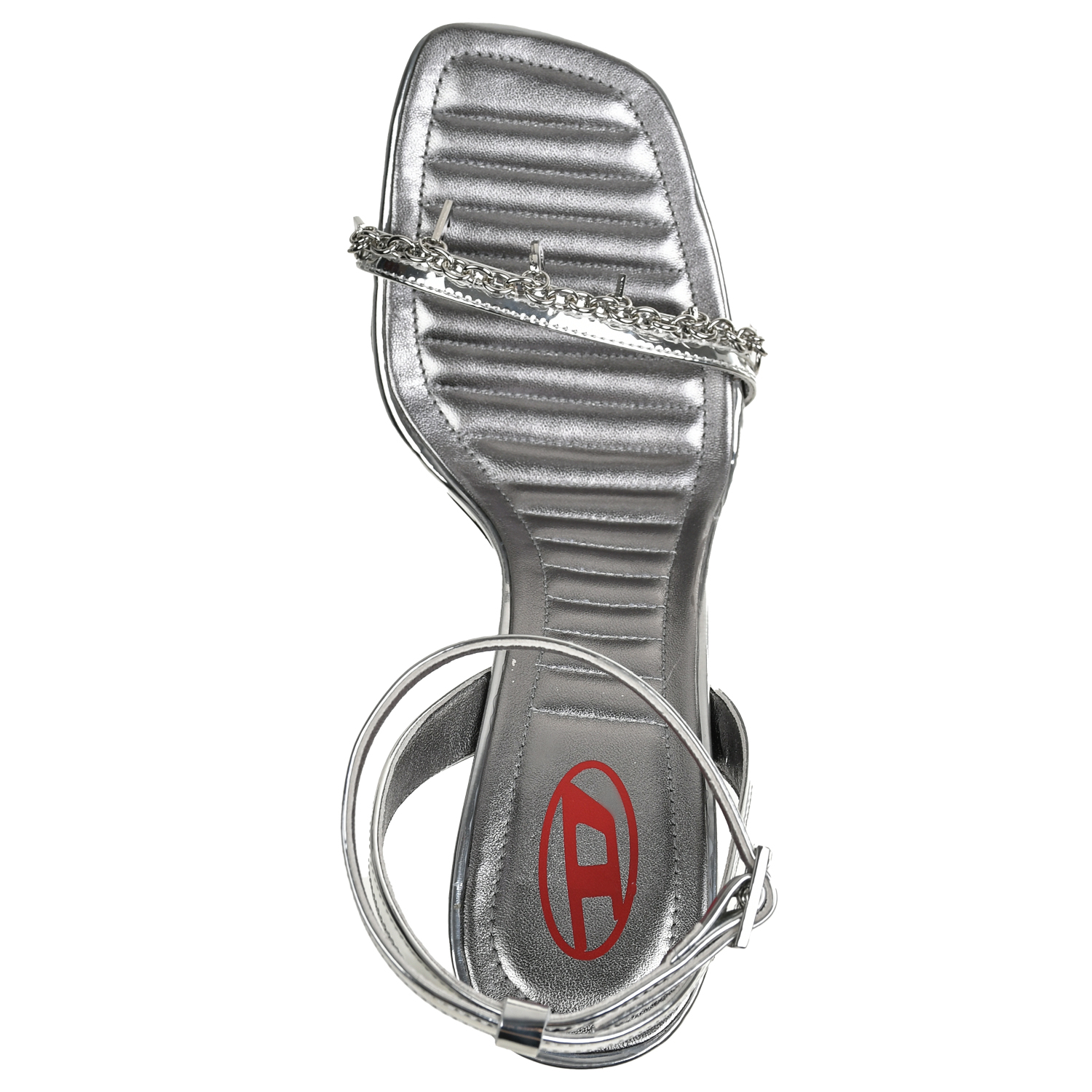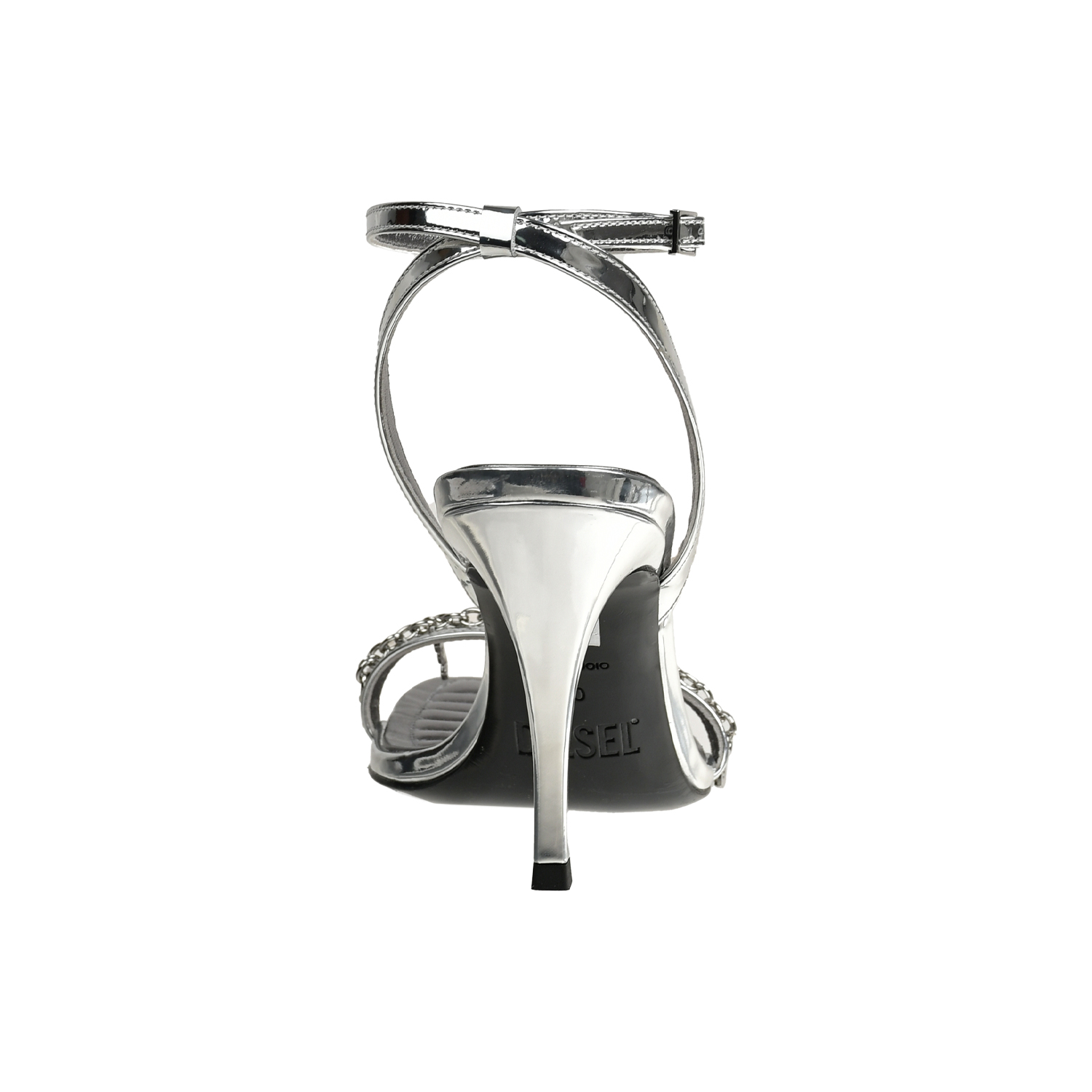 Босоножки на каблуке с тонкой перемычкой, серебристые