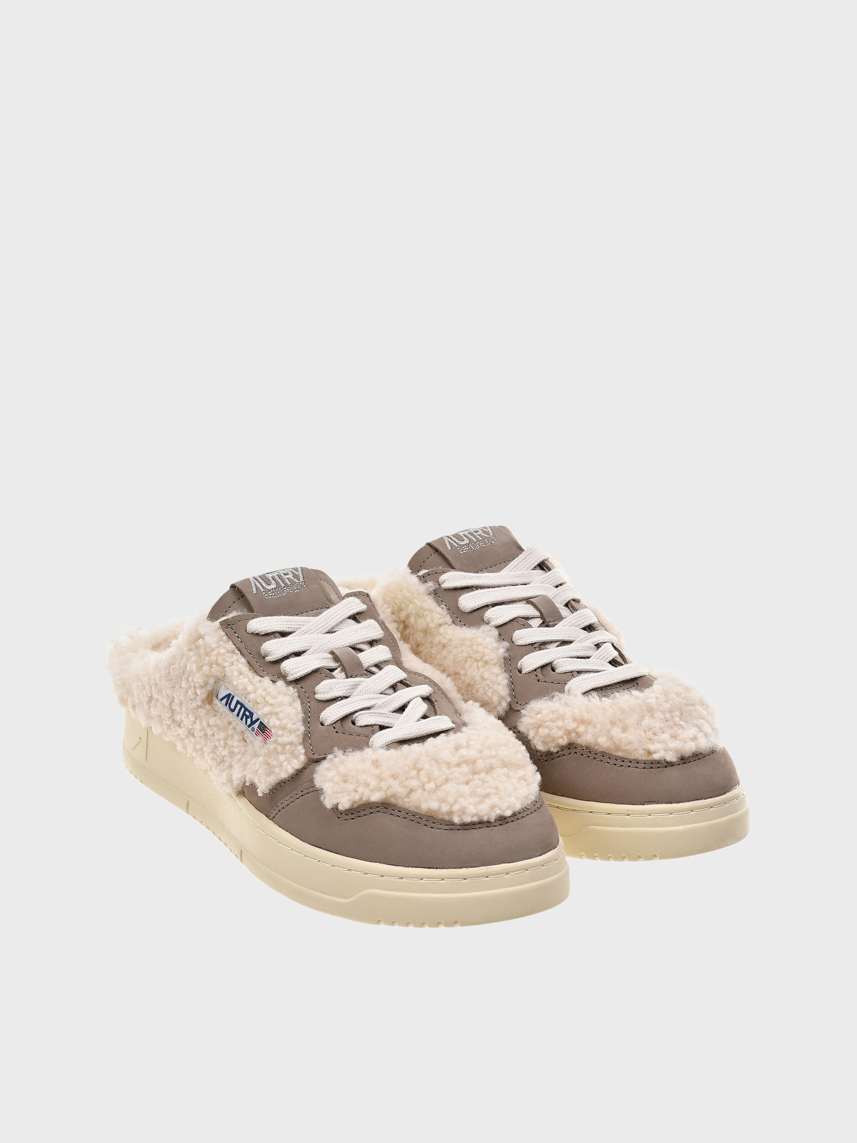 Кеды без задника на шнуровке с мехом, коричневые