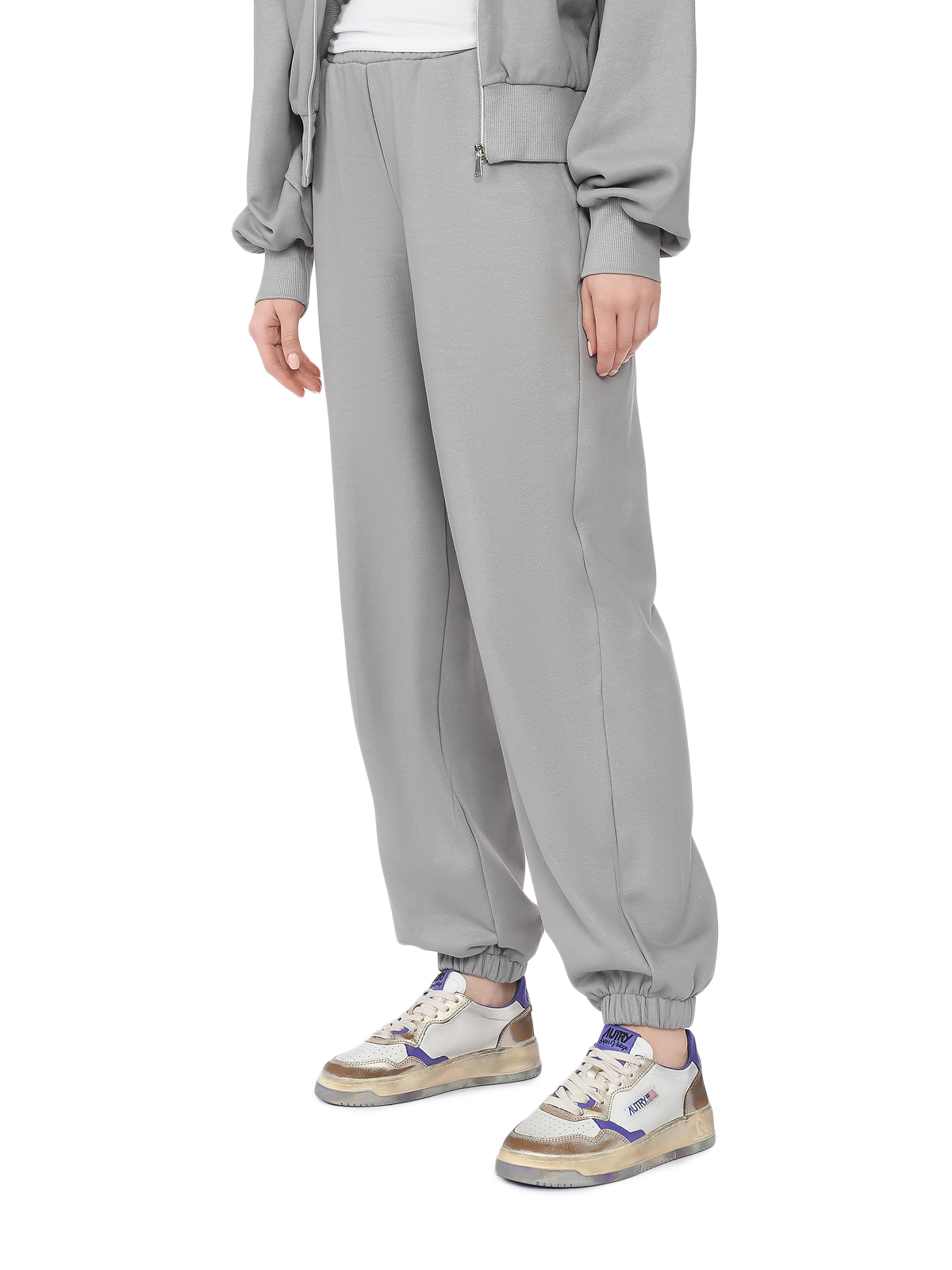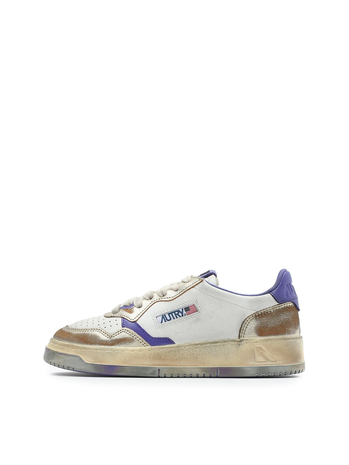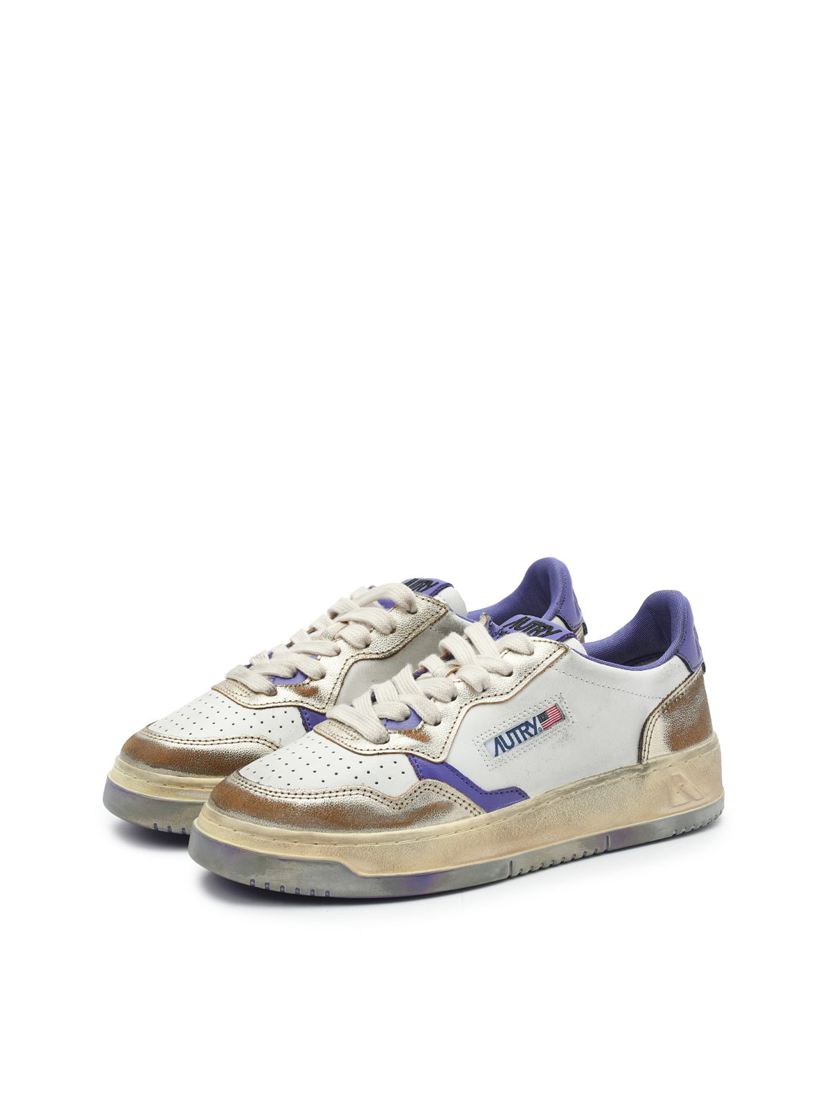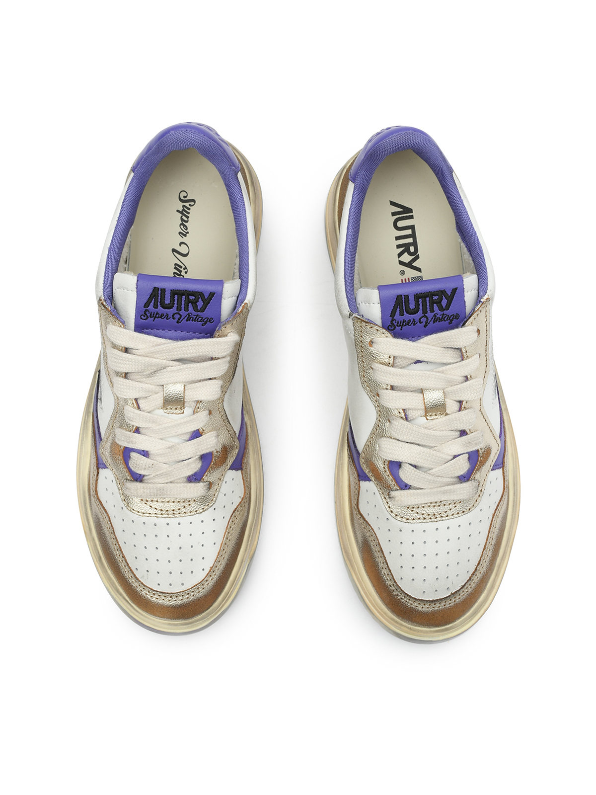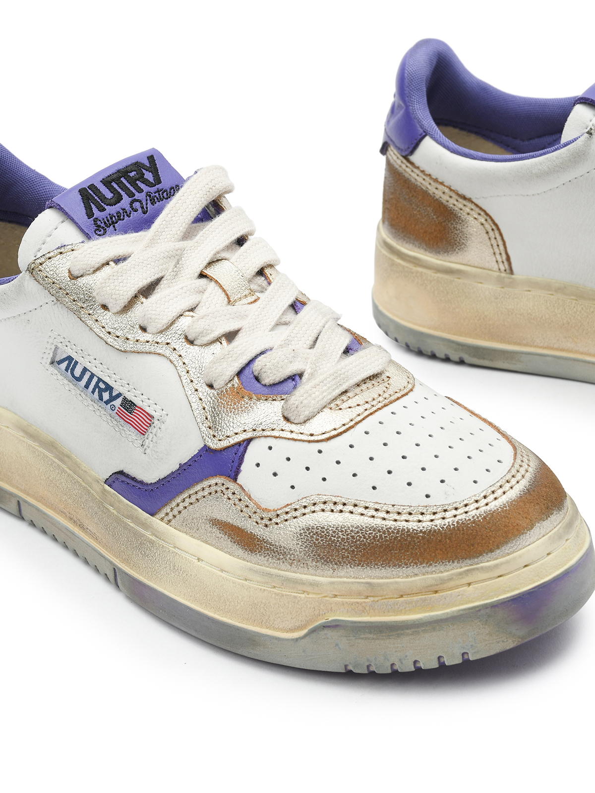 Кеды на шнуровке с фиолетовыми деталями, белые