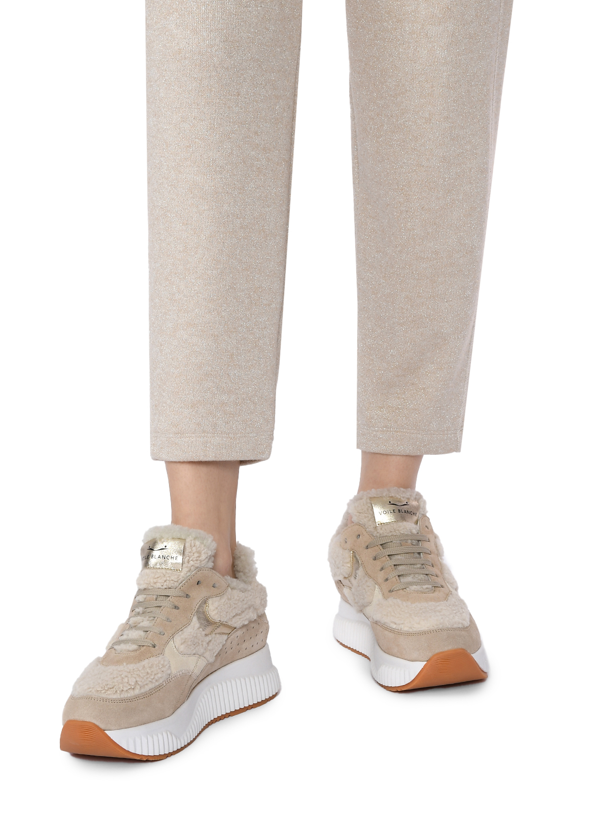Кроссовки с меховой подкладкой, бежевые