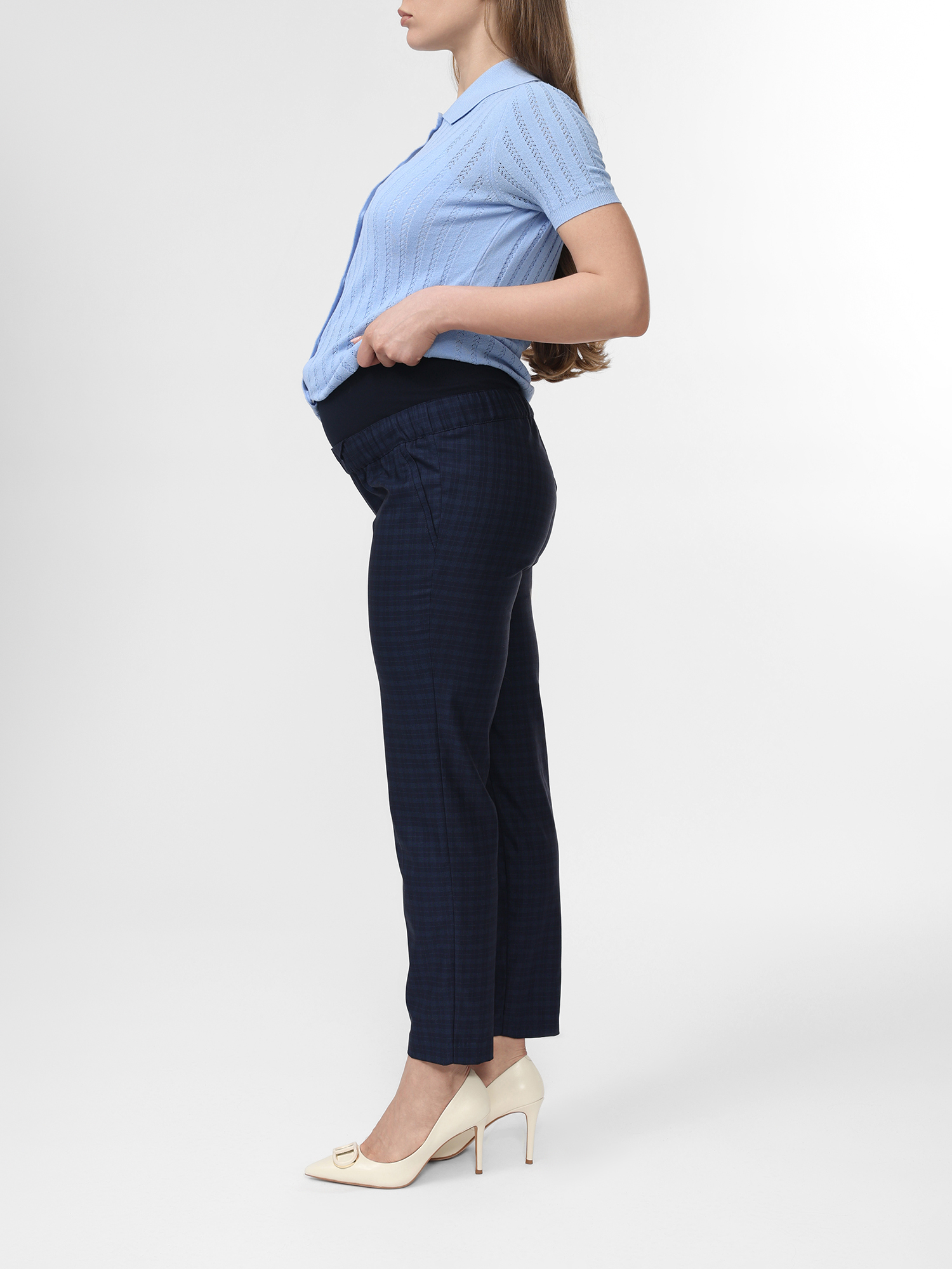 Синие клетчатые брюки для беременных