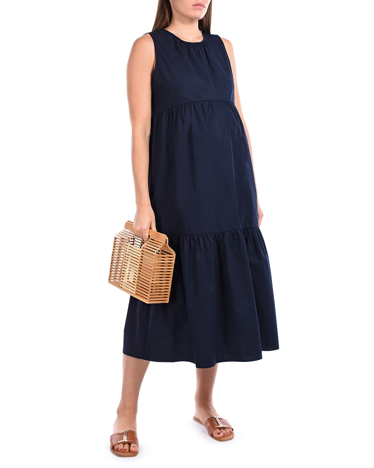 Синее платье для беременных с воланами