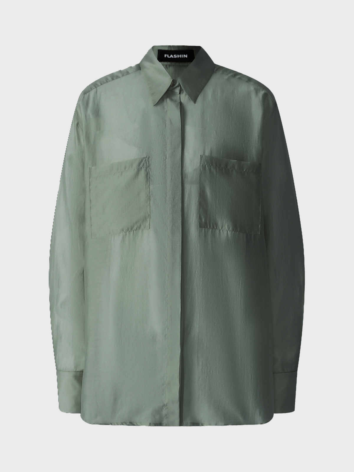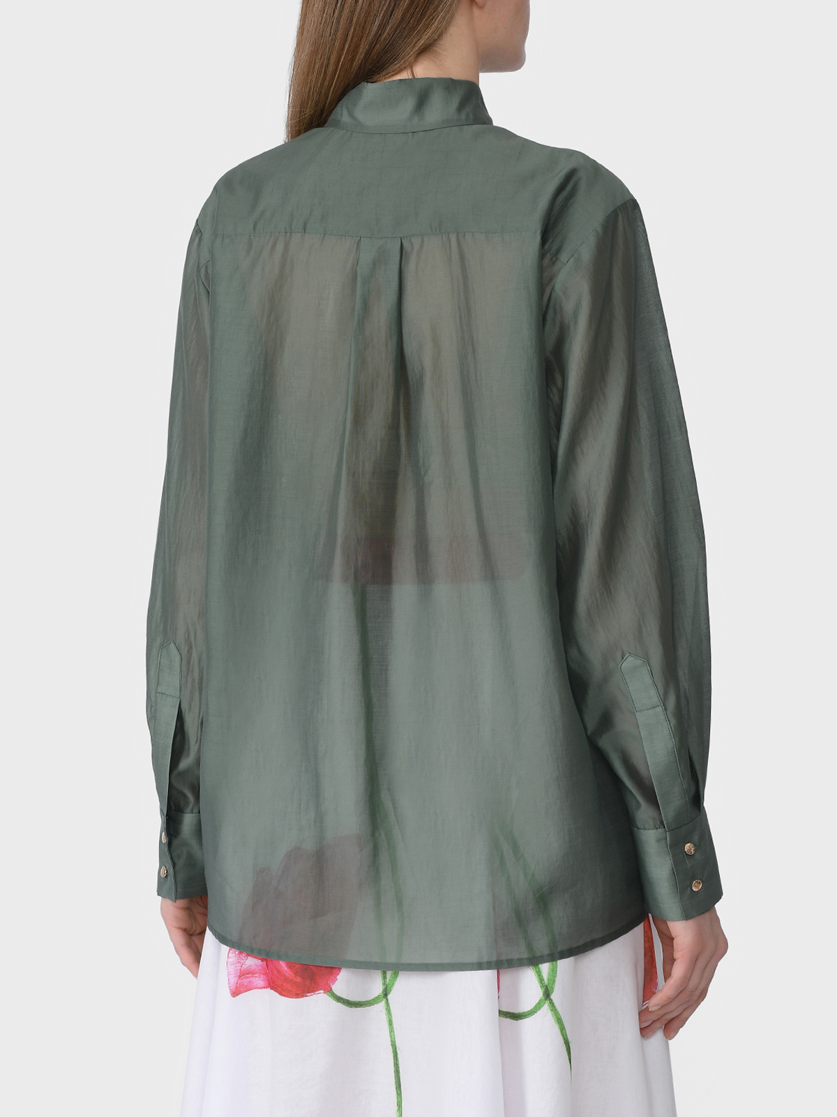 Блузка свободная с карманами, темно-зеленая