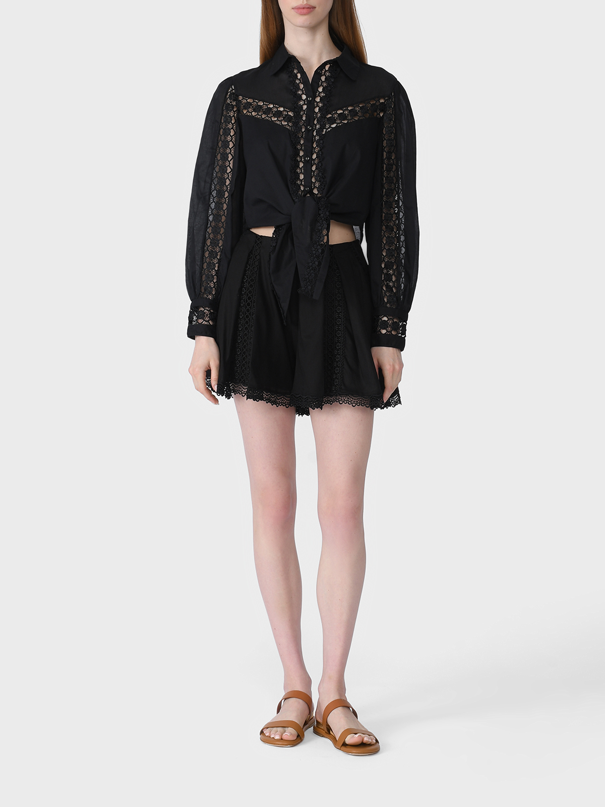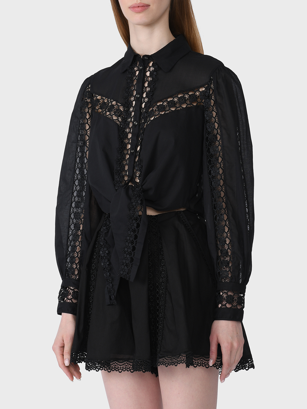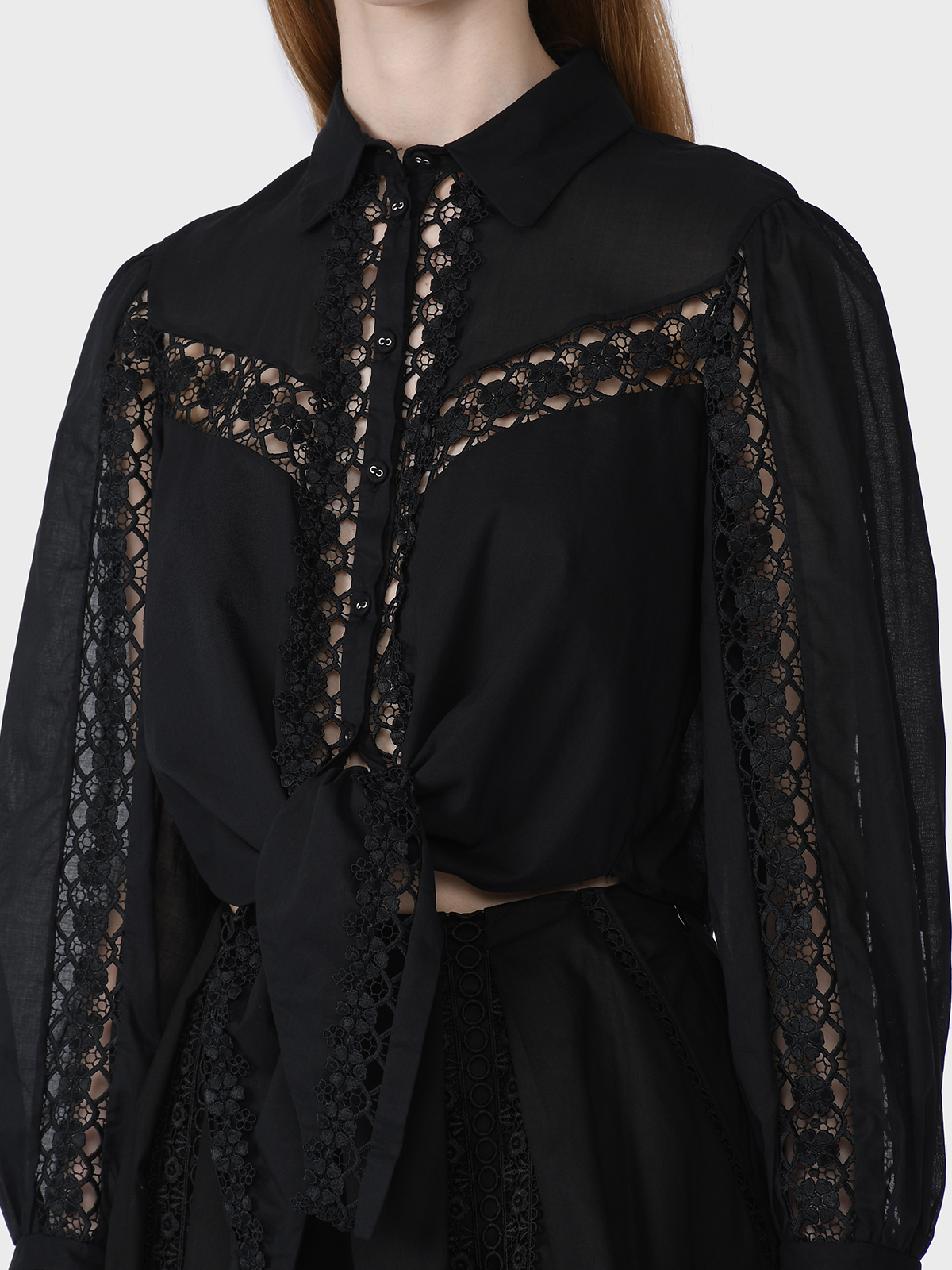 Блузка укороченная со вставками из гипюра