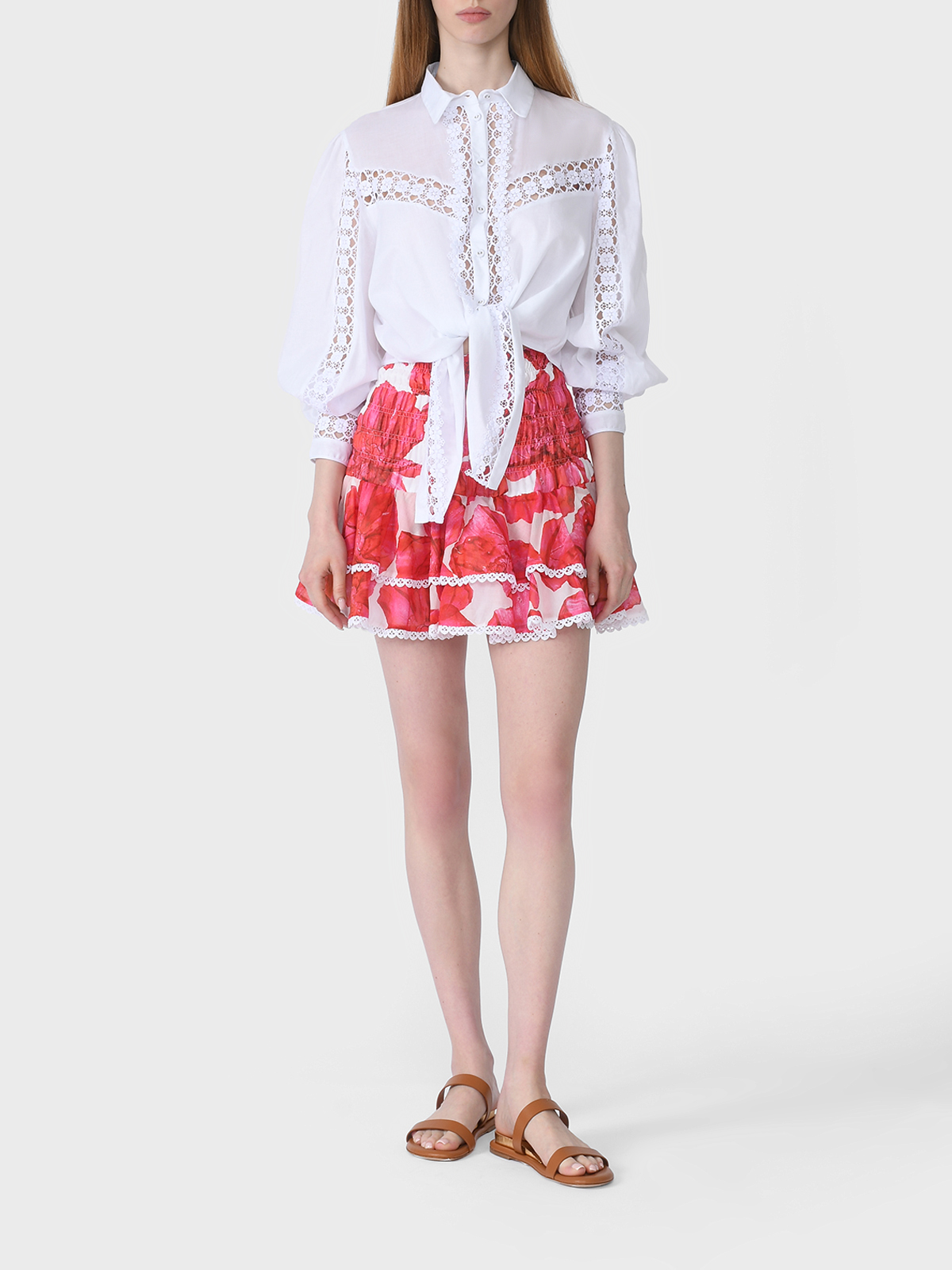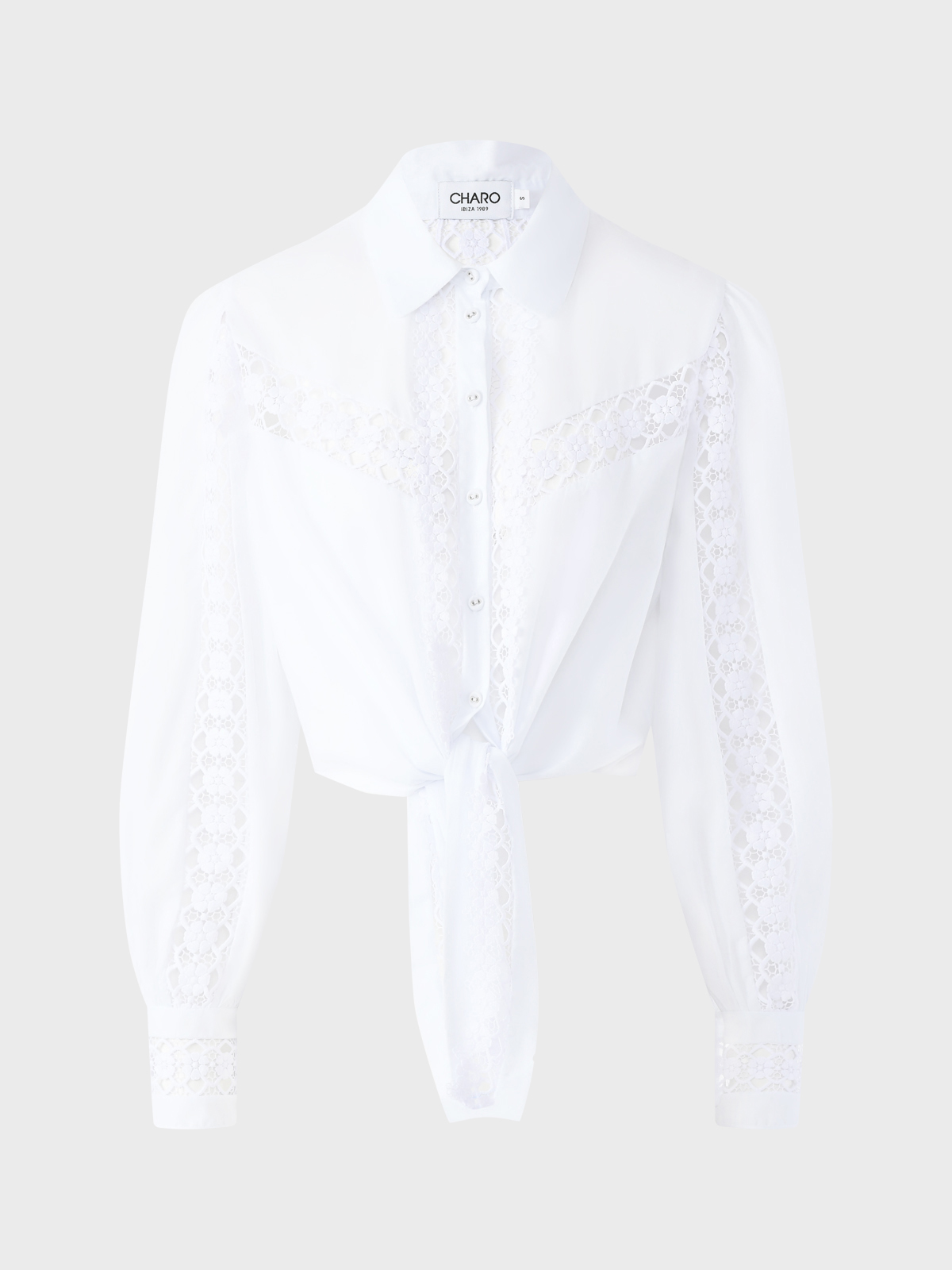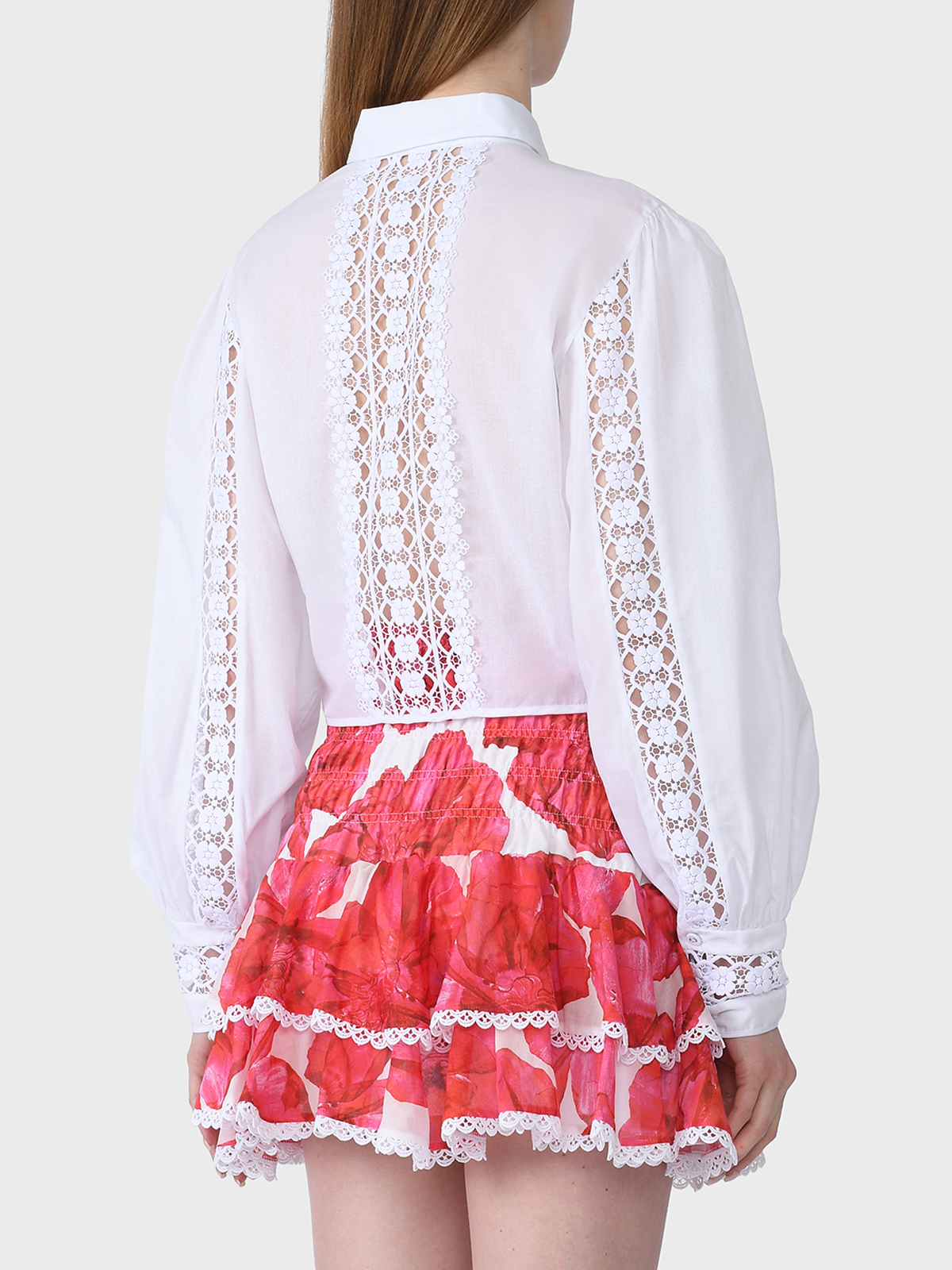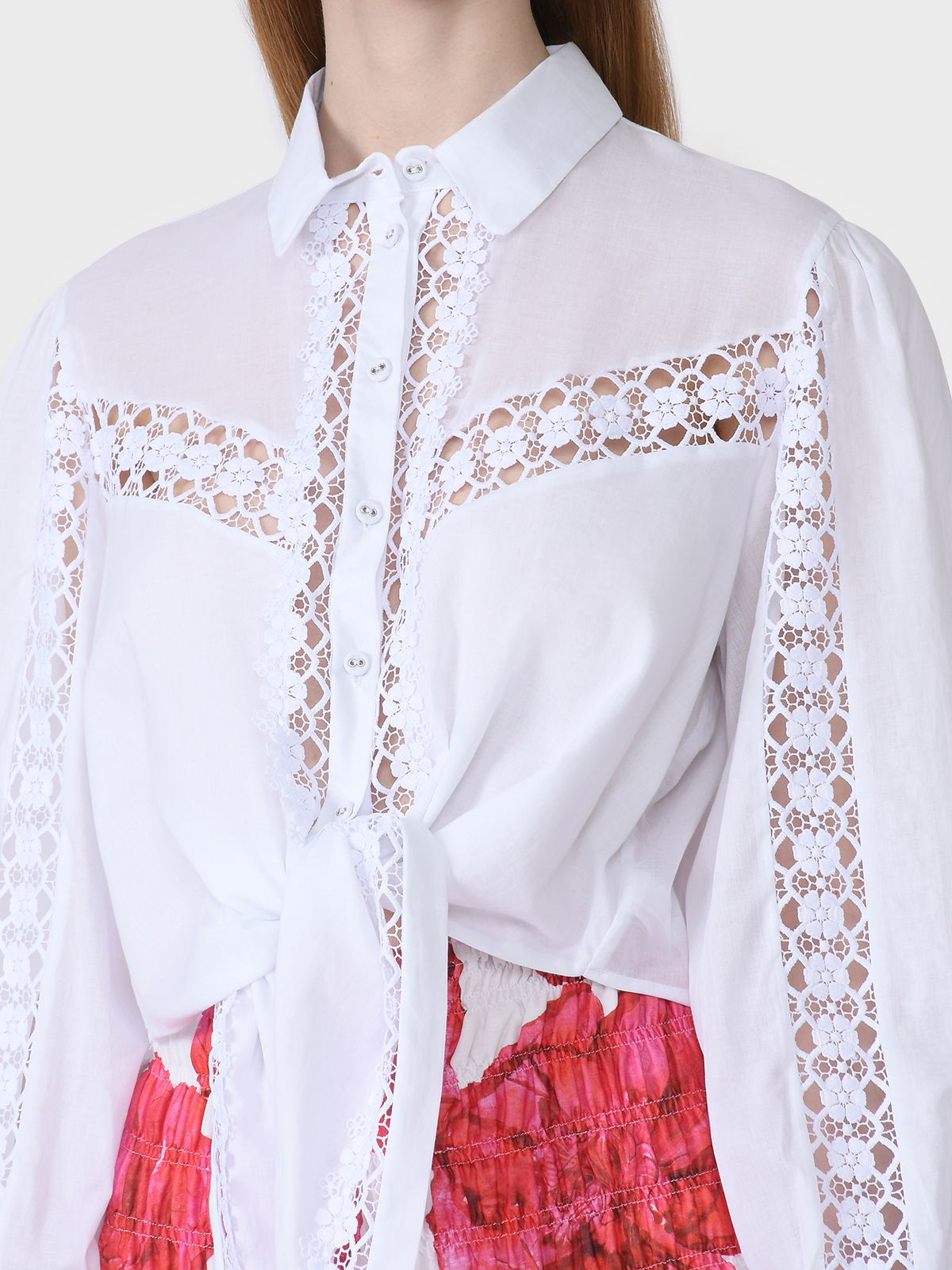Главная / Женские коллекции / Одежда / Блузы, Рубашки / Charo Ruiz / Блузка укороченная со вставками из гипюра, белая