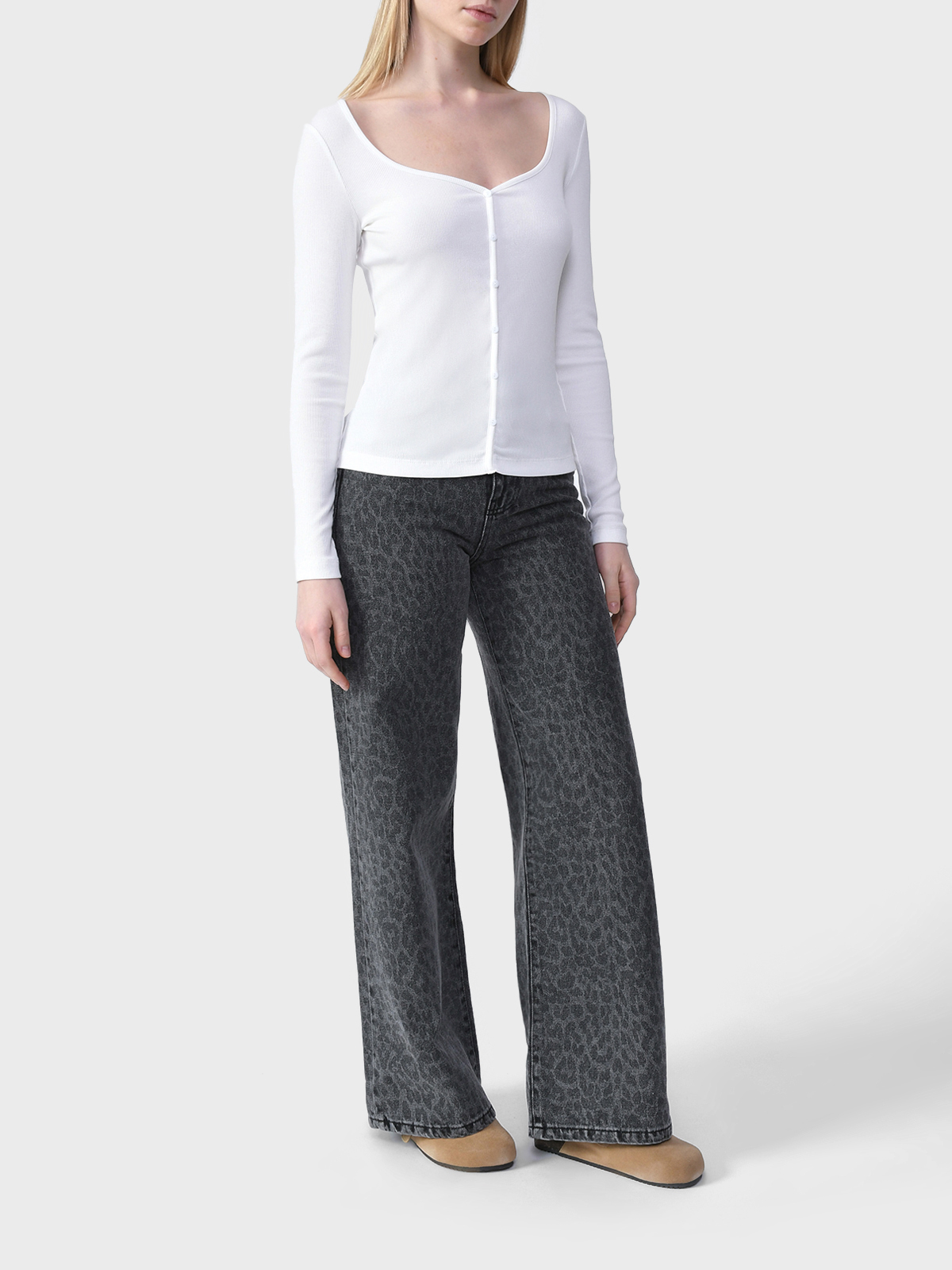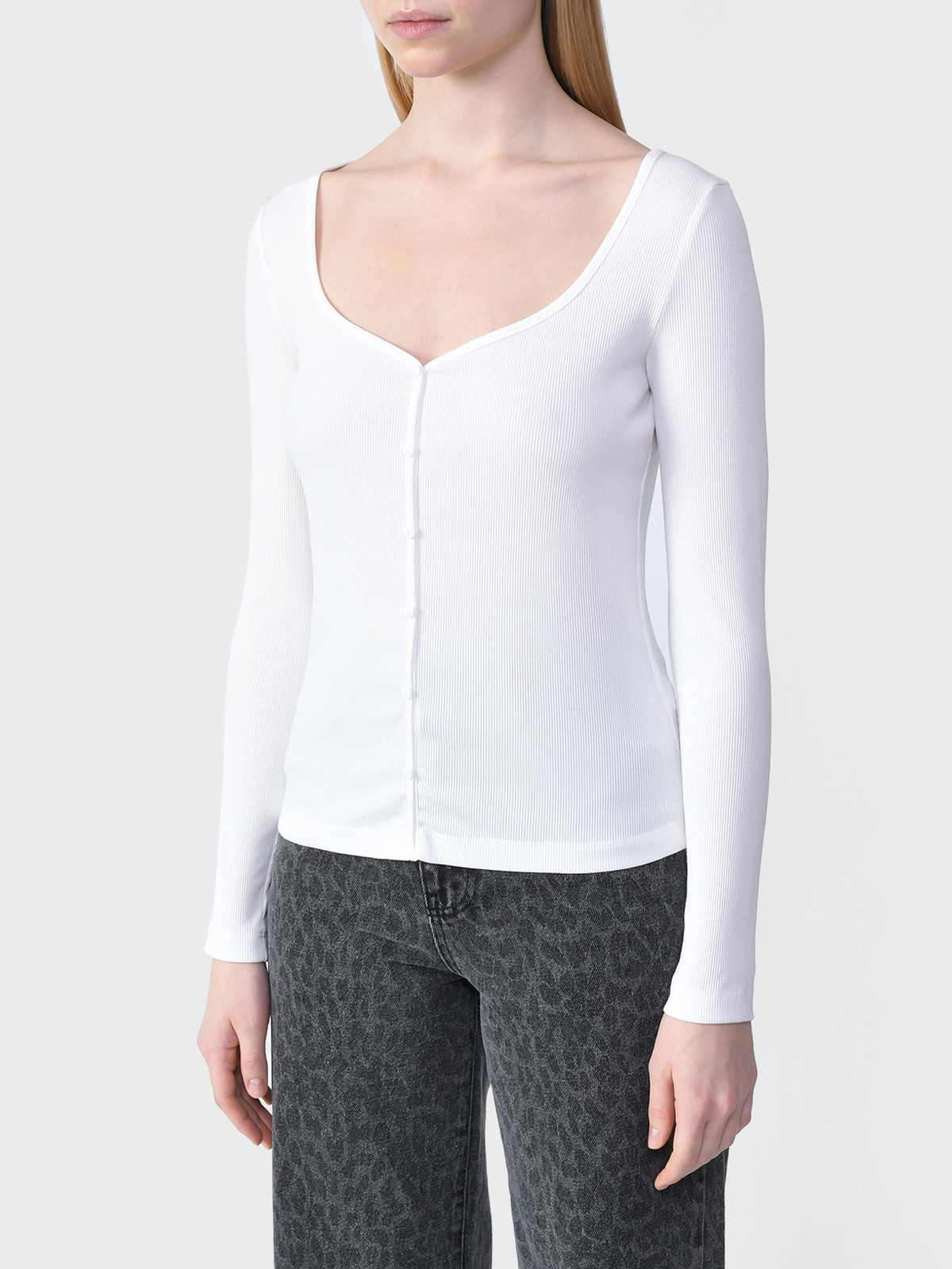 Блузон молочного цвета в мелкий рубчик