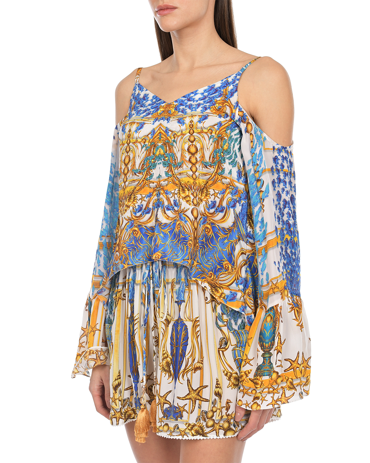 Главная / Женские коллекции / Одежда / Блузы, Рубашки / Kore / Блузон с открытыми плечами, принт "морской узор"