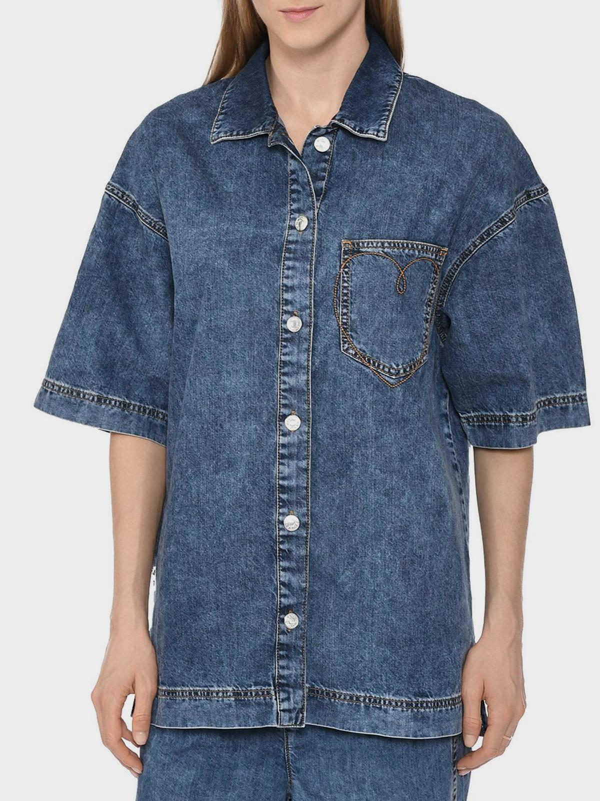 Джинсовая рубашка с вышитым сердцем на кармане
