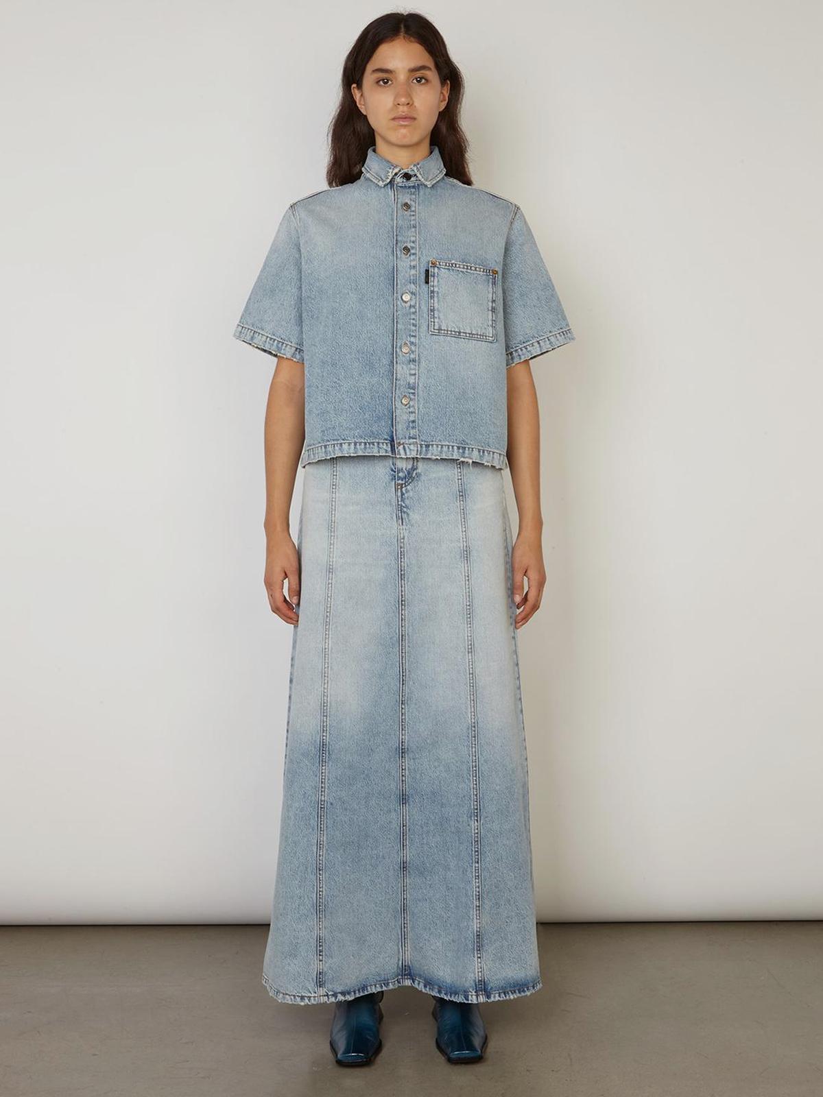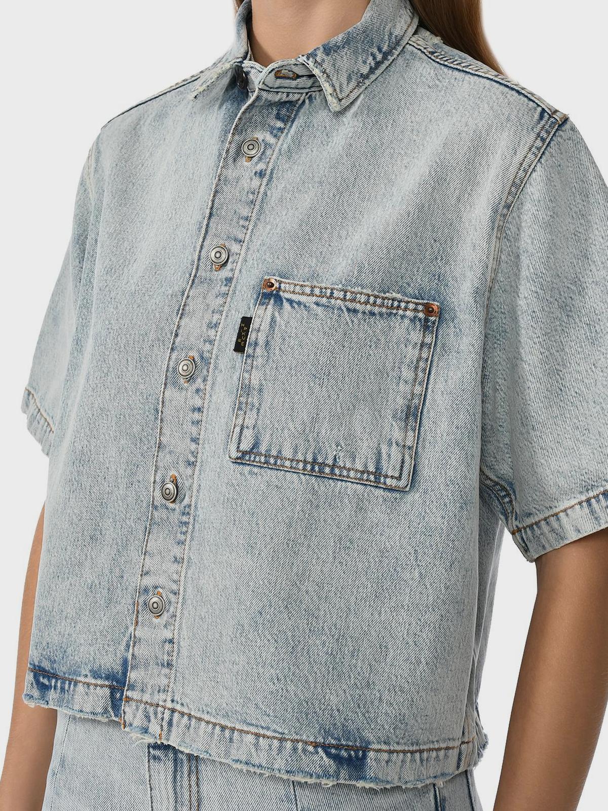 Рубашка широкая с коротким рукавом, голубая